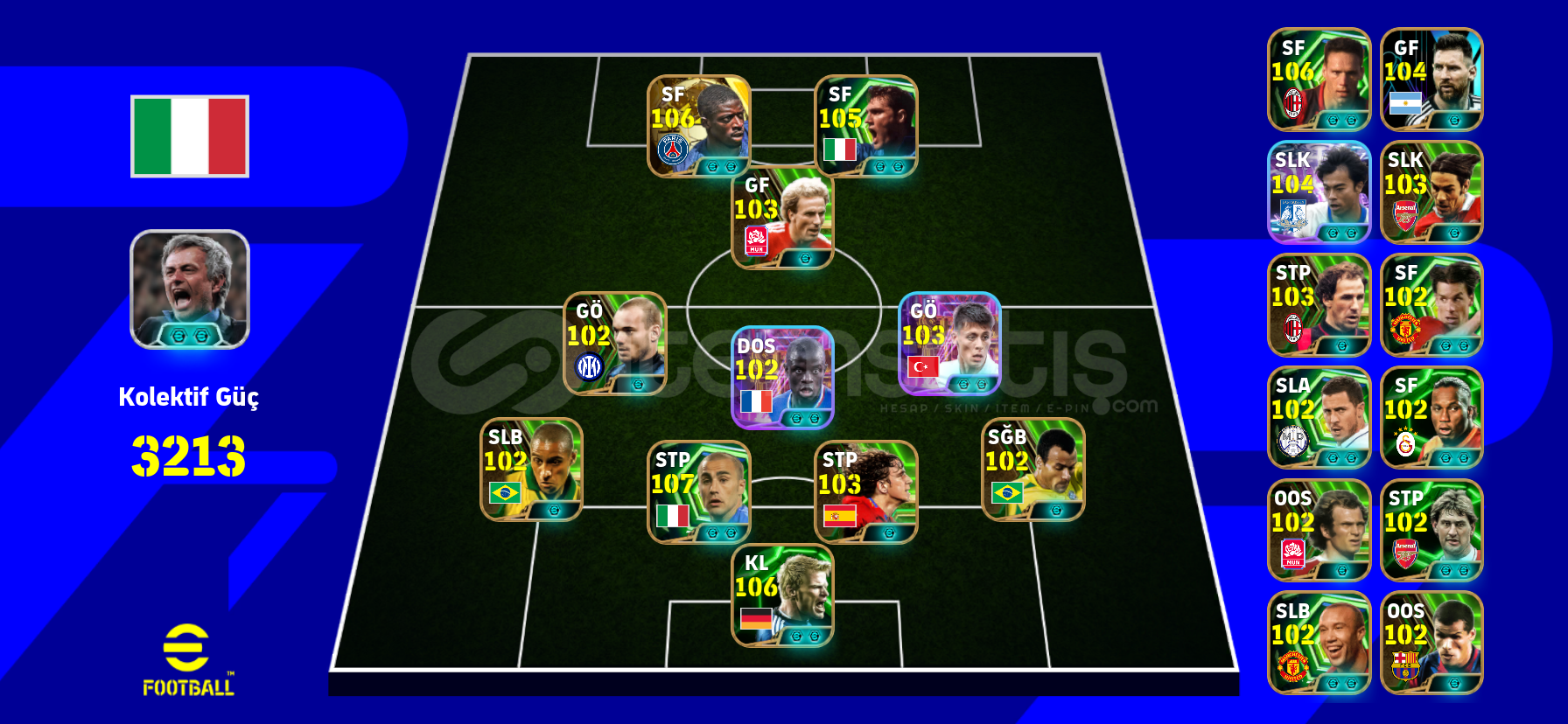 Alıcısına h.o olsun106 dembele 107 carnavaro106 van basten 105 vieri 103 rumenege Ve niceleri Tek bag içinde 500 mc varKadro dışı dop dolu