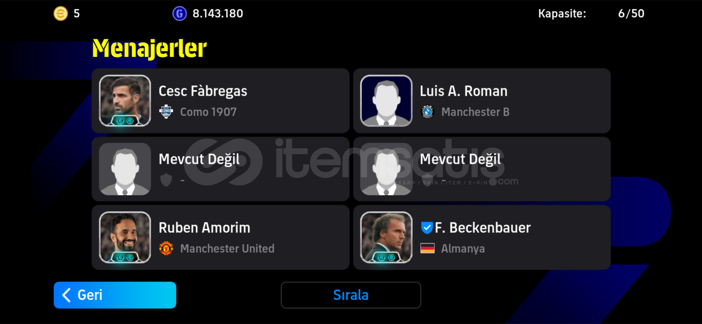 Hesabımda 104 messi için 3 yıl önce 800 tl oara yatırdım 106 drogba vs bir çok oyuncu vardır paralı menejer vardır eski hesaplardandır