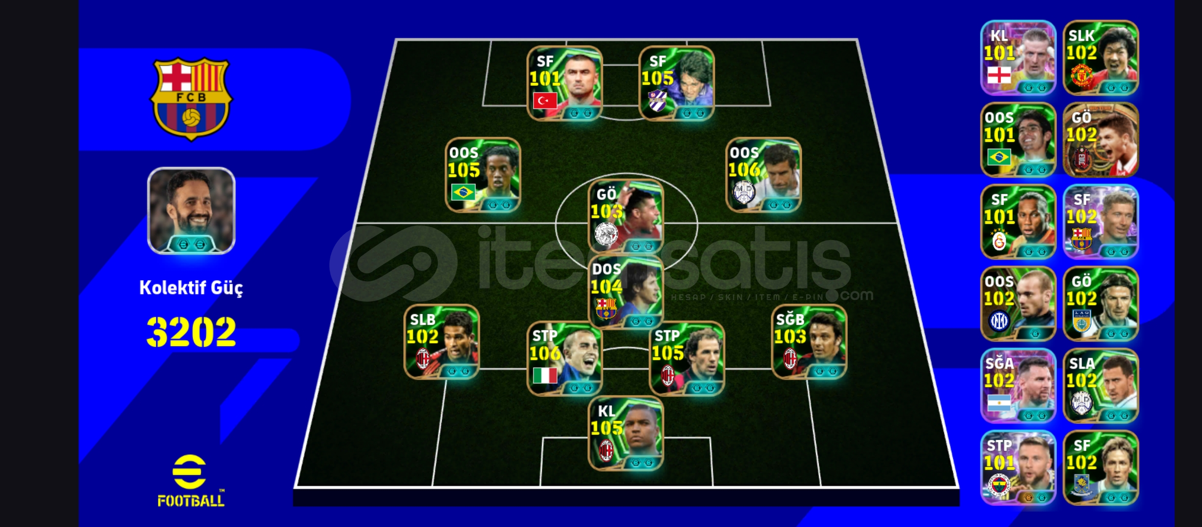 Hesapta106 figo105 Ronaldinho105 dida105 baresi106 cannavaro104 edmilson103 oddoSeçmeli sözleşme henüz alınmamıştıriOS/Android tek bağ-Mc yokCüzi miktarda indirim vardır