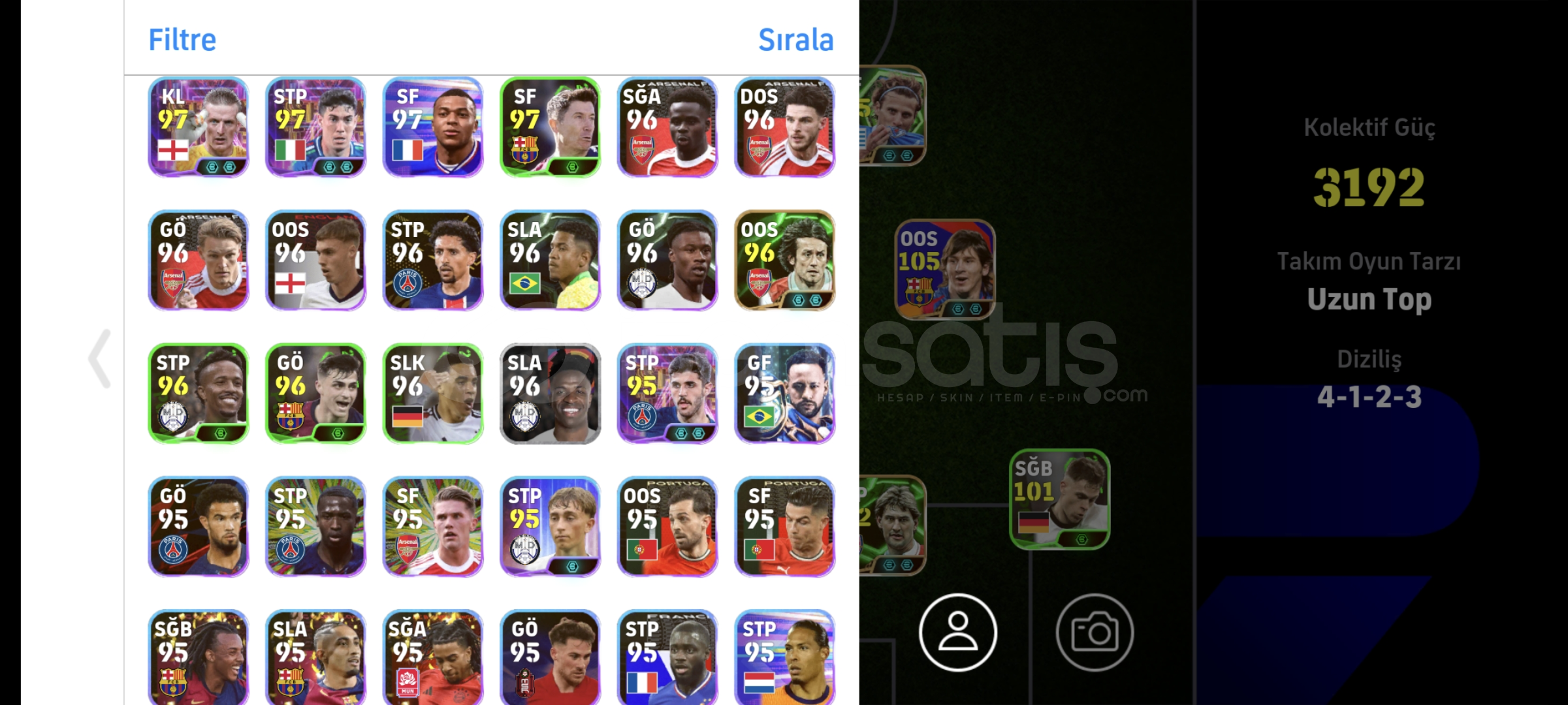 Hesap Tek Bağdır ve Mail Değişir.Eksi MC Yoktur.107 Osimhen106 Forlan104 Dembele105 Bebeto105 Batistuta106 Cannavaro3192 Kollektif Güç4 Adet Çift Güçlendiricili Menajer Alana Hayırlı Olsun.