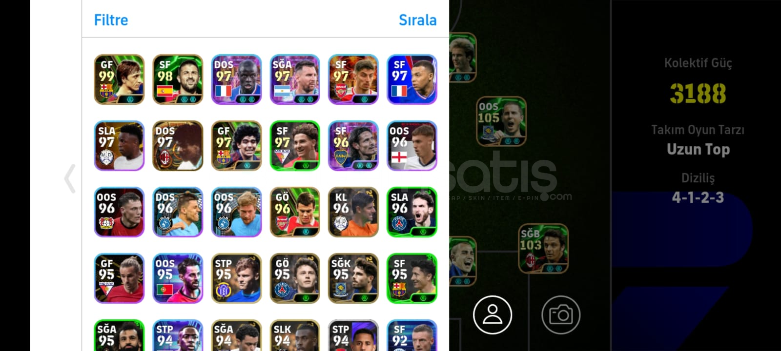 Bu fiyata böyle hesap bulamazsınız. Tek bağ eksi mc yok hesap göründüğü gibi anlatmaya gerek yok. 106 mbappe 105 rummenige oyunun en iyi forvetleri. Acil paraya ihtiyacım olduğu için satıyorum. İlk alana hayırlı olsun. Ufak da olsa pazarlık yapılır.