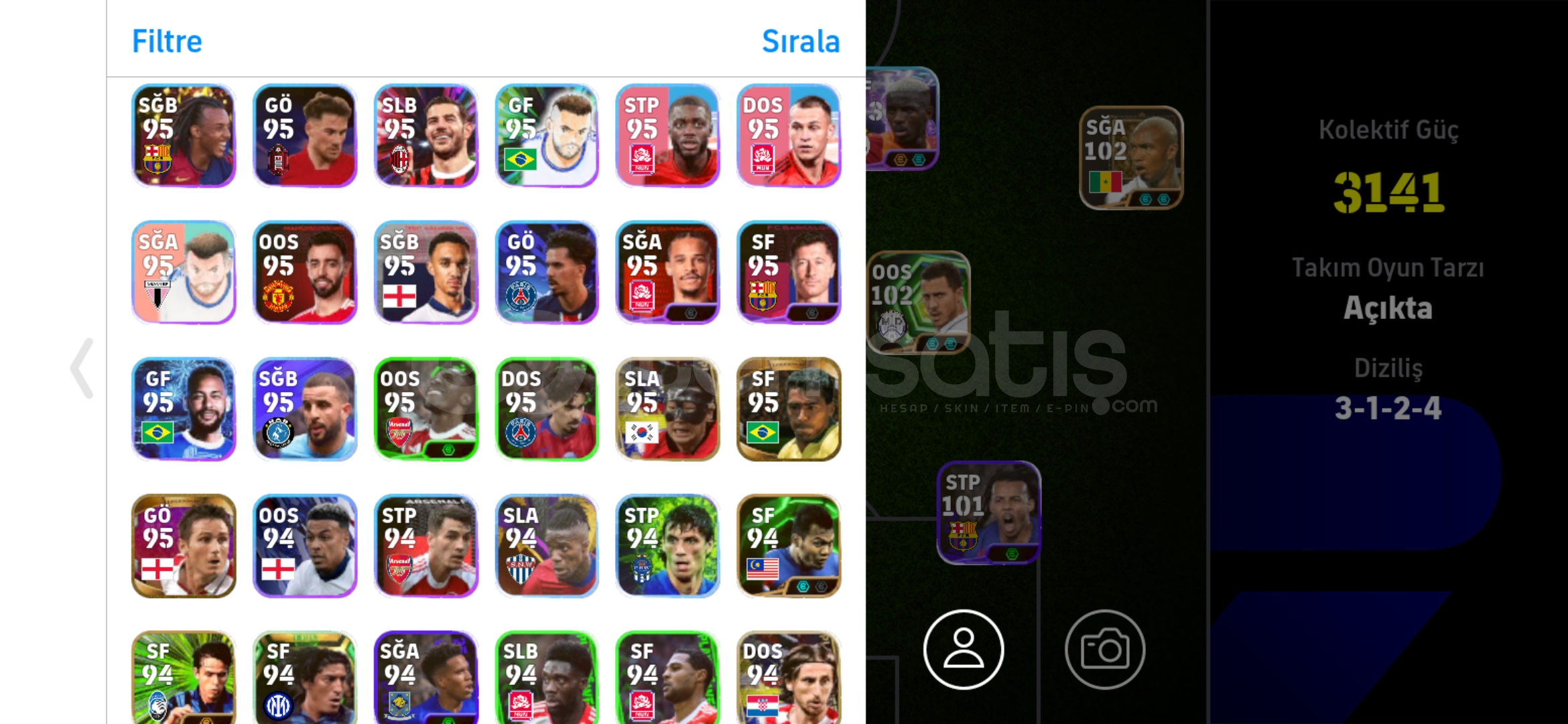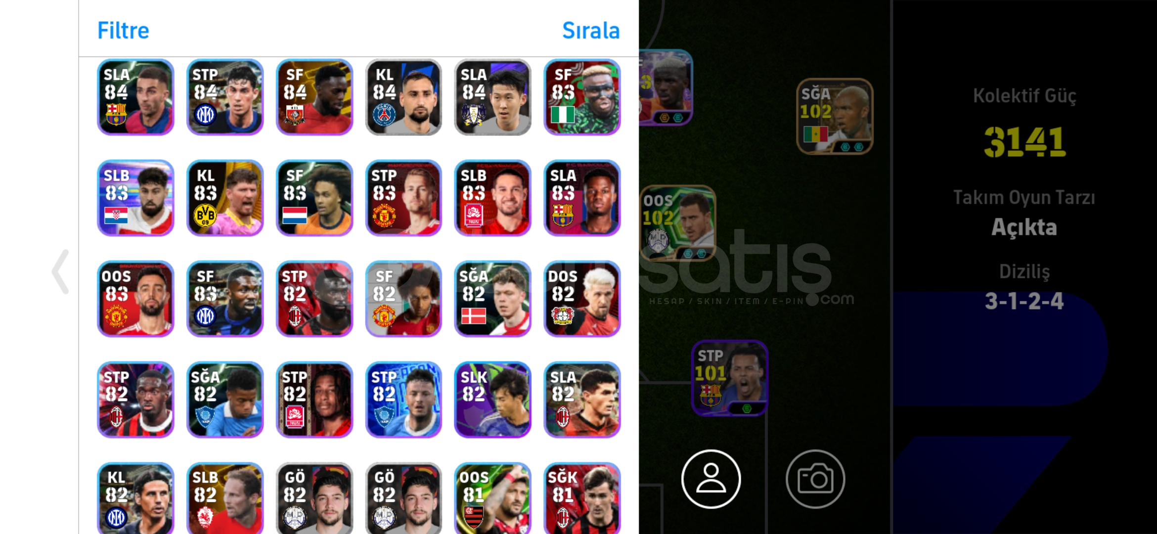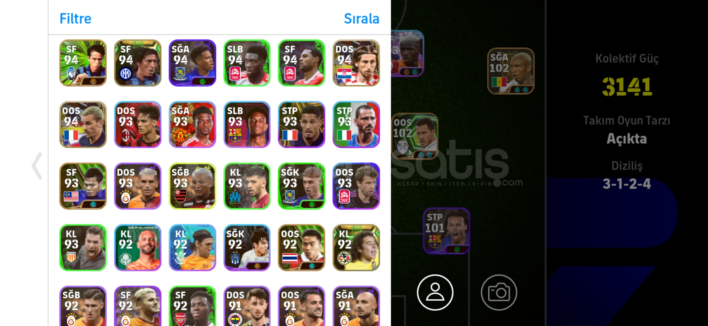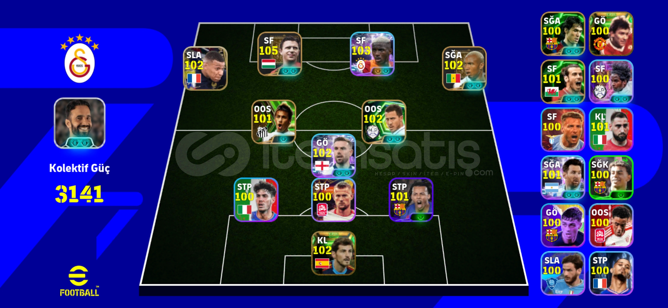 Hesapta göründüğü gibi 106 puskas 104 Victor osimhen 102 Kylian mbappe (2022 Dünya kupası kartı)102 edin Hazard 102 henderson 102 İlker Casillas 2021 kartı 102 diouf101 Neymar 101 bombacı gareth bale 100 delight nadir kart100 bastoni aşırı Ender değerli kart 101 Gianluigi Donnarumma aşırı Ender özel kart 100 ımmobile aşırı Nadir değerli kart 100 Romario aşır...