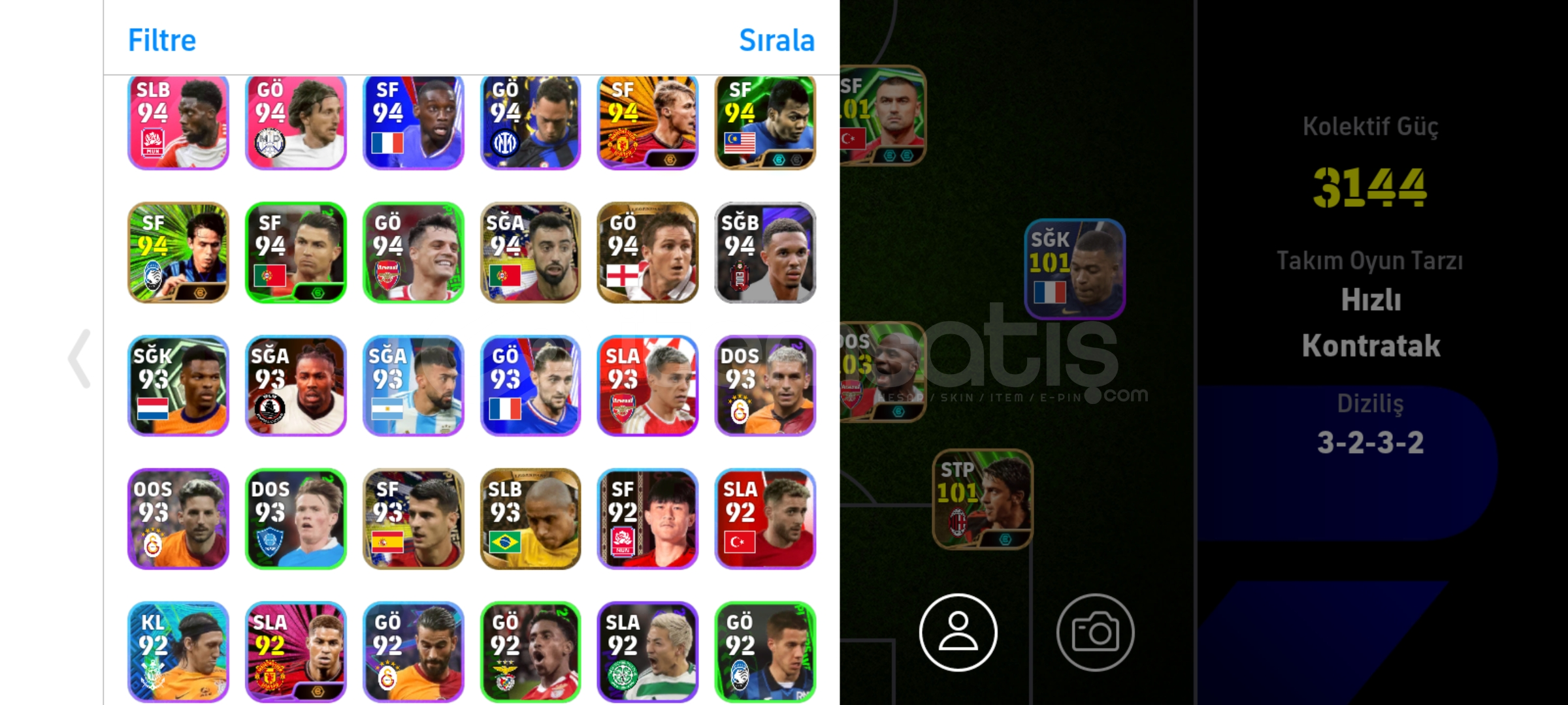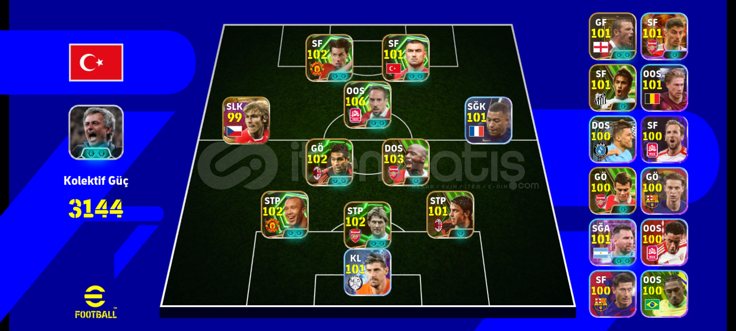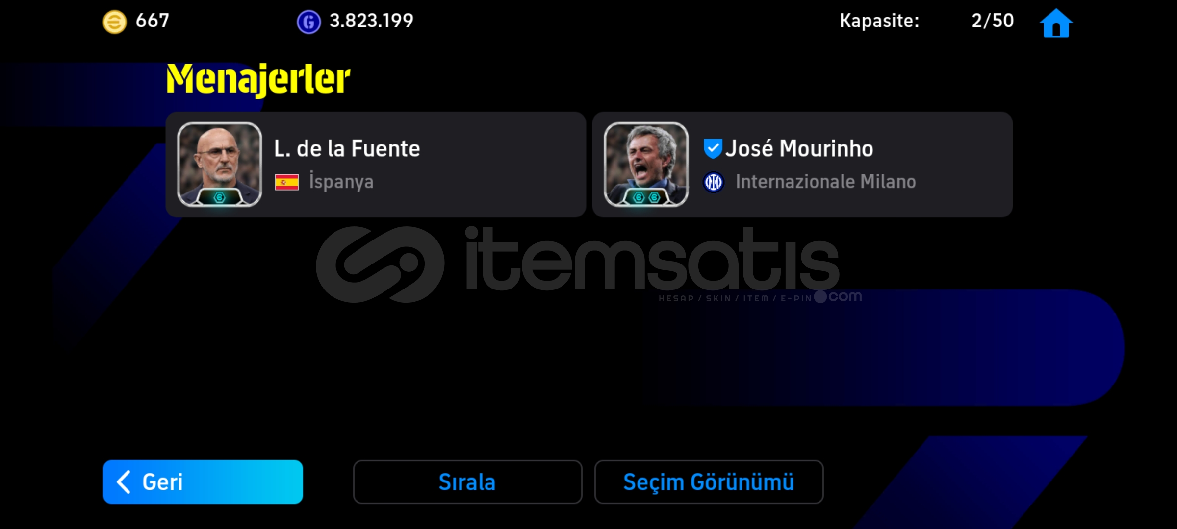 3144 Kolektif Güç,Tek Bağ Konami ID,Güçlendiricili Menejer; José Mourinho, De La Fuente,667 My Club (Android),3.8M Gp,106 Ribery, 103 Vieira, Bombacı Burak Yılmaz ve dahası...Tüm Detaylar Fotoğraflarda Mevcuttur,Alıcısına Hayırlı Olsun...
