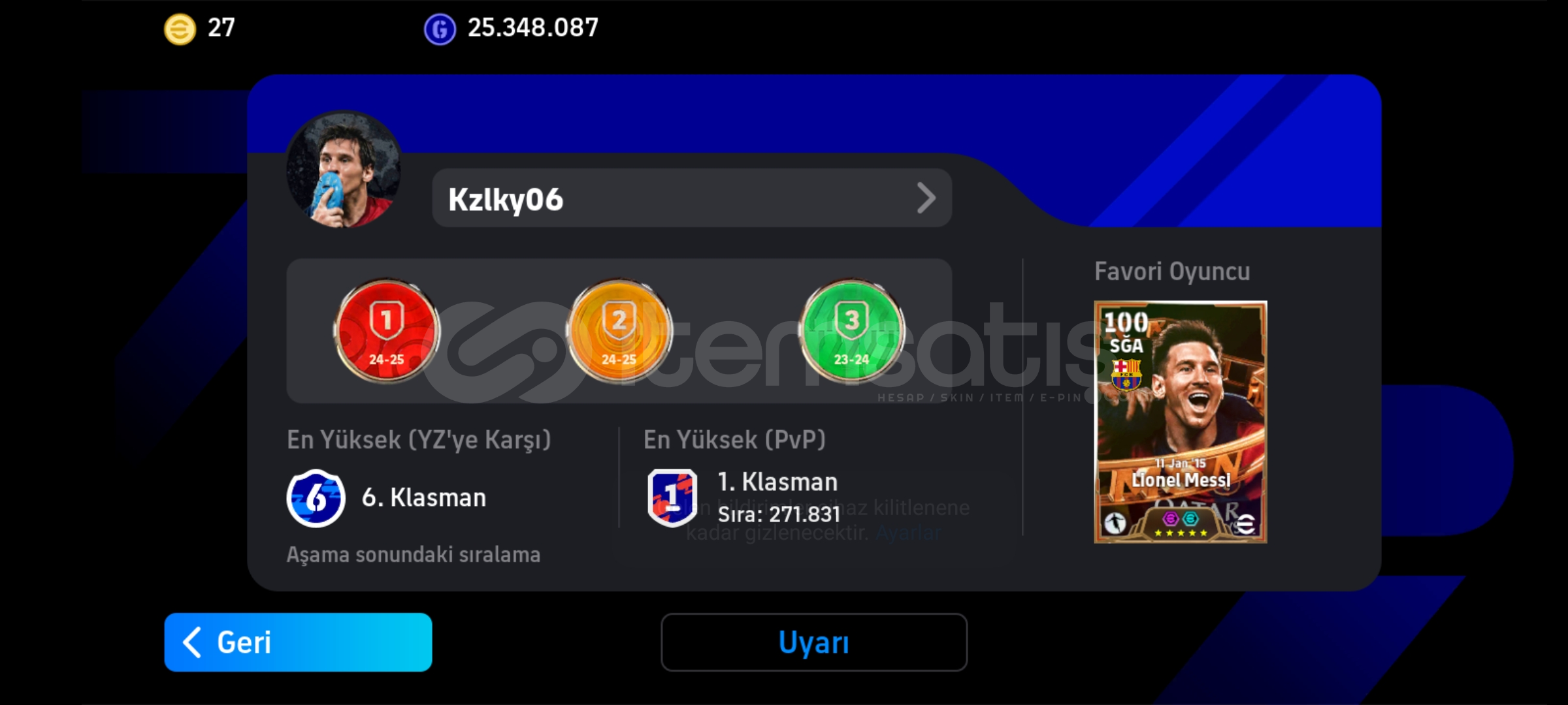Hesap tek bağGiriş hakkı var-mc yokKlasman 1 görmüşOyunun en iyi bombacıları forveti ve defansıRumme paketi fullenmişPazarlık olurAlana hayırlı olsun