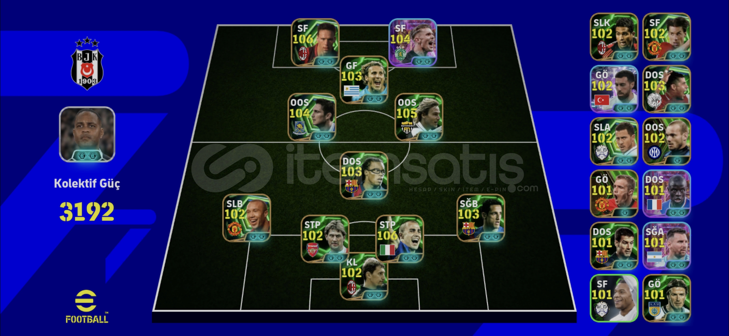 3192 kg, TEK BAĞ✅️, ORTA REZERV106 VAN BASTEN106 CANNAVARO105 NEDVED104 FORLAN104 GYOKORES104 LAMPARD ve daha nicesi dopdolu hesap, ...