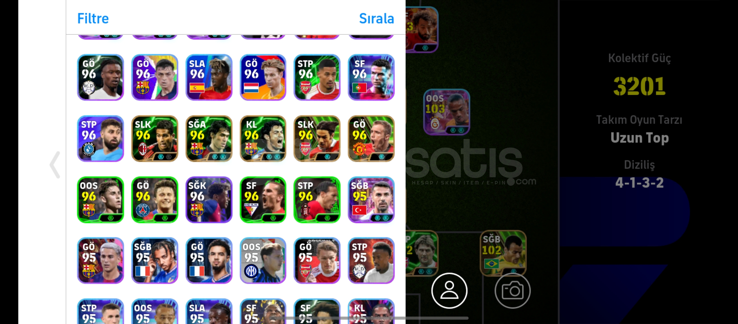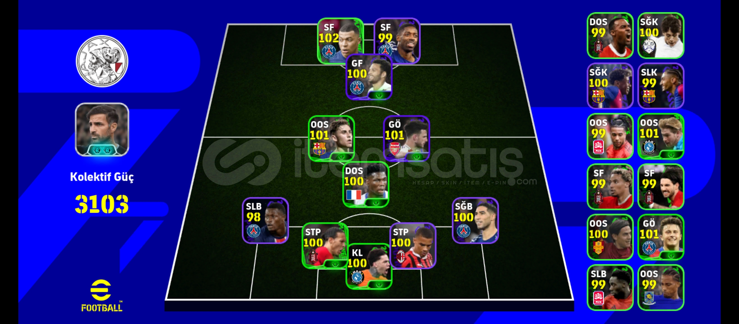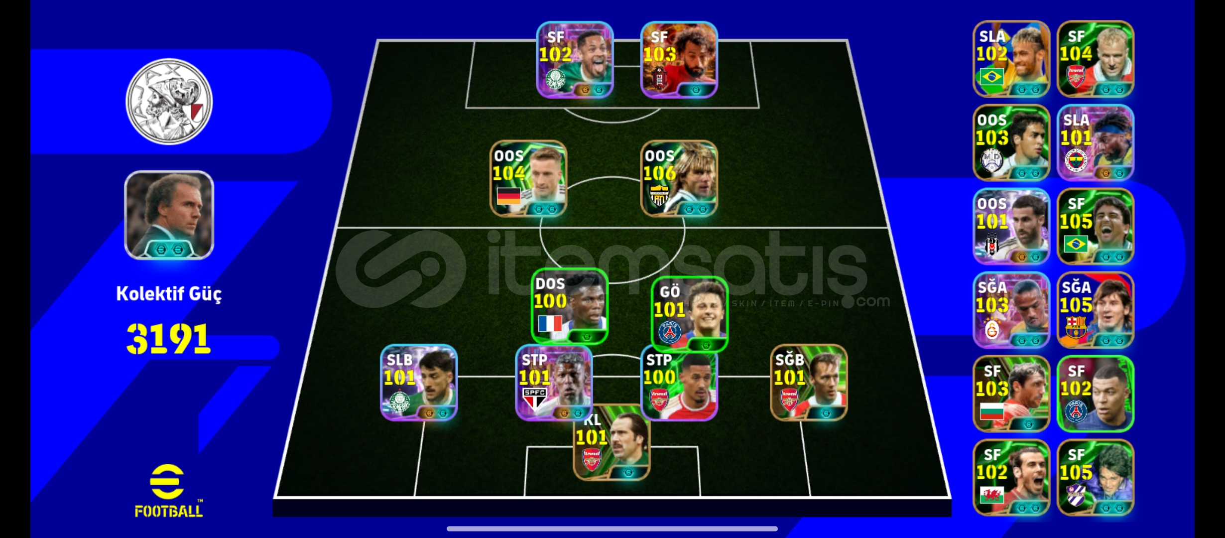 Hesapta 4 paralı bombacı vardır sağlam oyuncular var 106 nedved falan rezervi baya dolu çok sağlam stsl kadrosu çıkıyor stsl kadrosu severler için birebir hesap toplam 11 paralı oyuncu var çift bagdır ama bir sorun teşkil etmez
