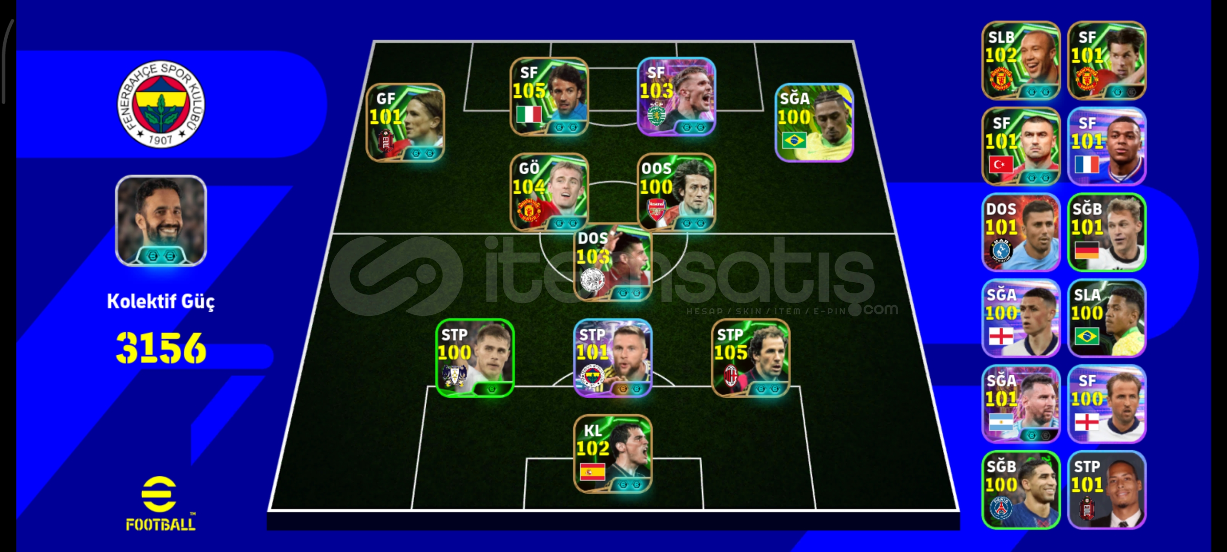 3156 KOLEKTİF GÜÇ.2 ADET GÜÇLENDİRİCİLİ MENAJER.107 BOMBACI DEL PİERO , 103 GYOKERES , 105 BARESİ , 101 BOMBACI BURAK YILMAZ VE DAHA FAZLASI.)ŞANSLI HESAP.TEK BAĞDIR OTOMATİK TESLİMATTIR KONAMİ İD VE ŞİFRE İÇİNDEDİR EKSİ MC KESİNLİKLE YOKTUR PAZARLIK MEVCUTTUR ALICISINA HAYIRLI OLSUN.💎