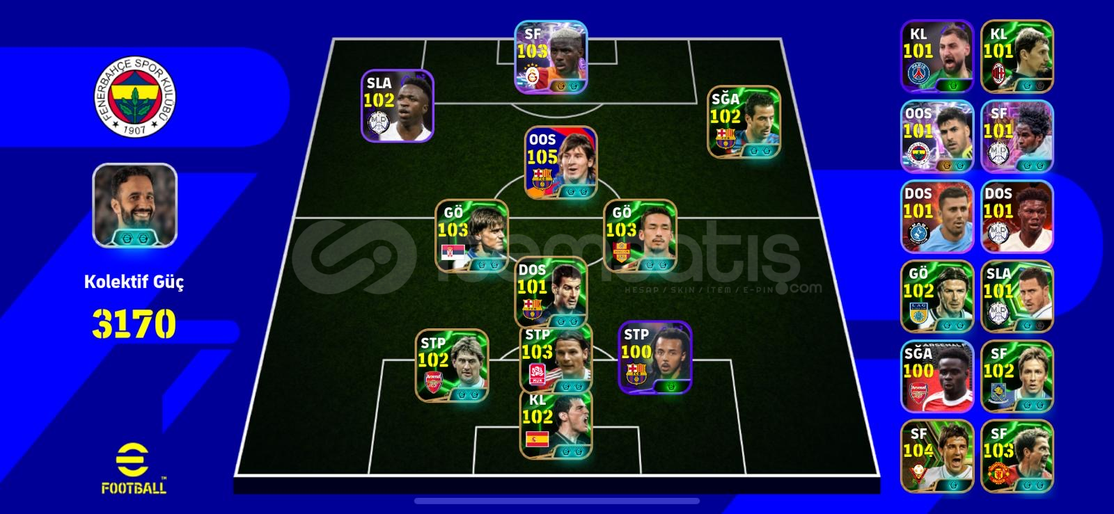 107 OSHİMEN104 ASENSİO105 MESSİ104 OWEN103 NAKATA103 VAN BUYTEN103 STOJKOVİC102 GUİLY102 CASİLLAS102 ABBİATİ102 GUARDİOLA20+ EPİC/SHOW TİME VARDIRSÜPERLİG KADROSU İÇİN 10/10 DUR2 MENAJERTEK BAĞKADRO DERİNLİĞİ 100’E YAKIN OYUNCU VARDIREMEK HESABI