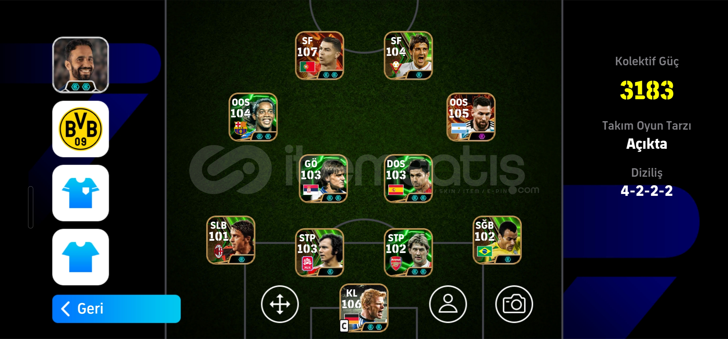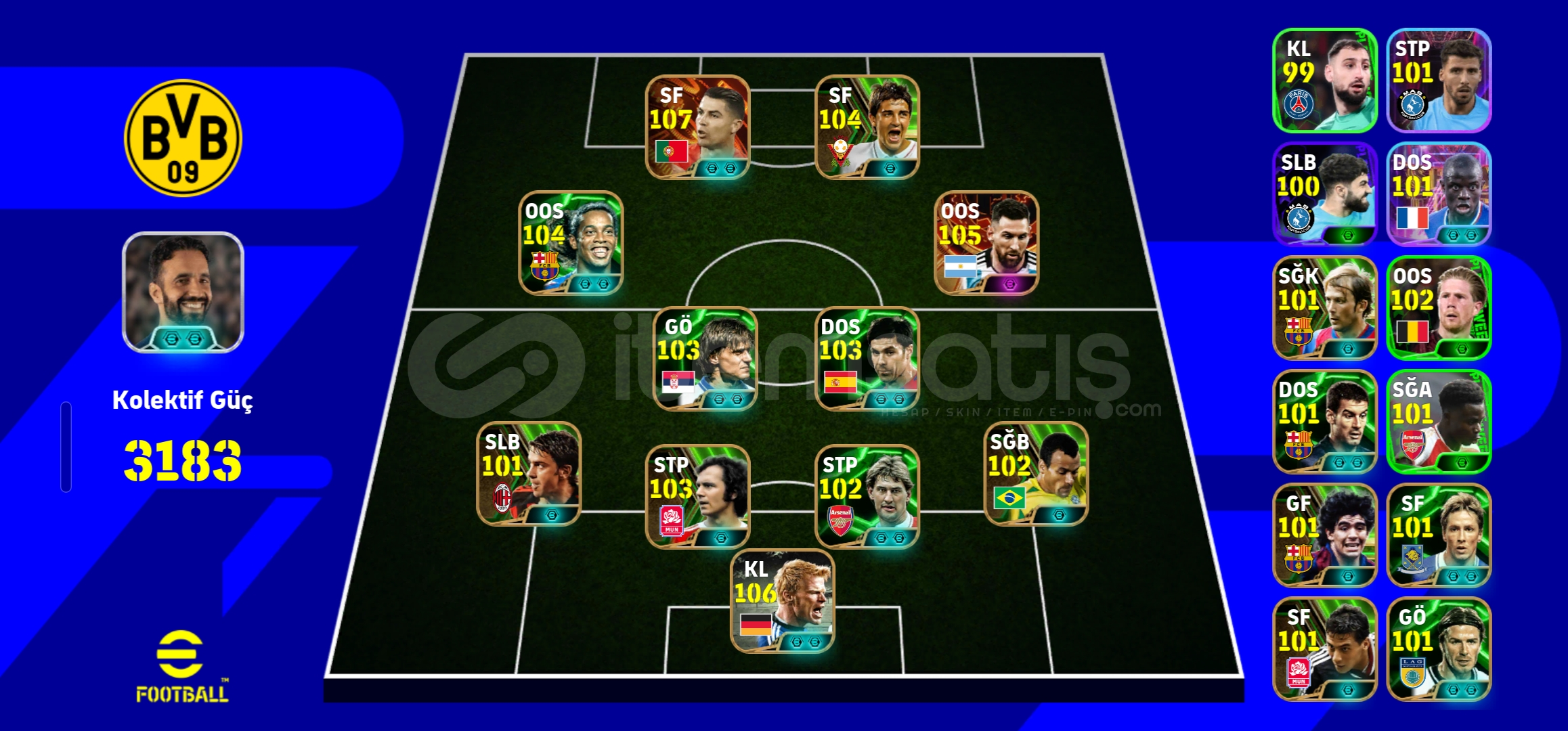 107 Ronaldo105 Messi104 Ronaldinho106 Khan103 Stojkovic103 Xabi Alonso103 BeckenbauerHesap resimlerde görüldüğü gibidir.-MC yoktur.Tek bağdır.Siz satın aldığınızda mesaj gelir hemen girip teslim ederim. Mailinize aktarılır.