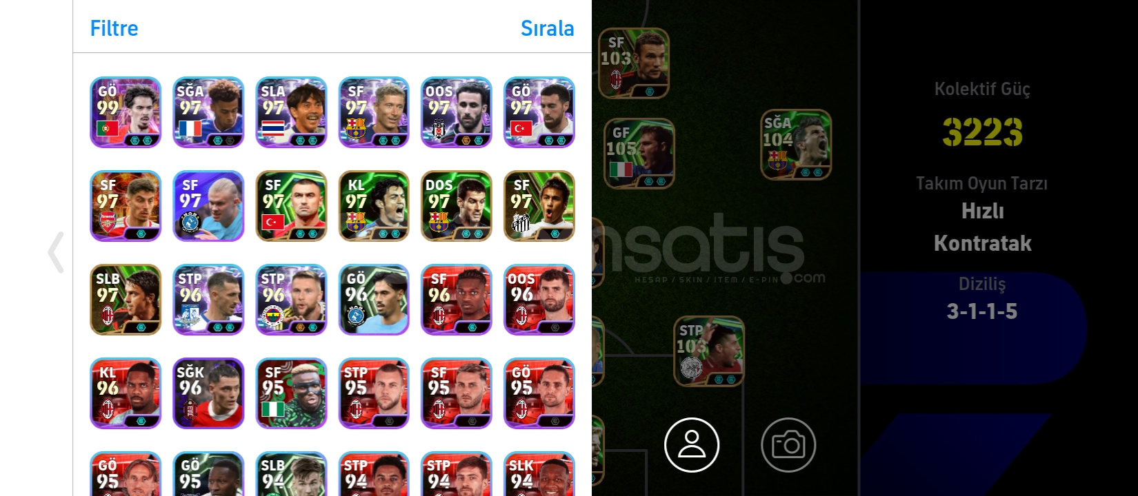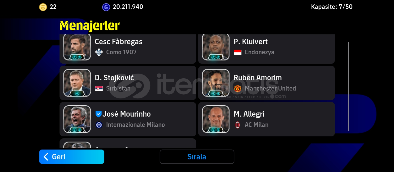 107 Ronaldo 107 carnavaro 105 bombacı vieri 105 bombaci David villa 103 bombacı chiesa 105 Baggio 105 vitinha 106 Olivern kahn 104 shevchenko 105 Messi 7 menajerli tek bağ eksi mcsiz hesap