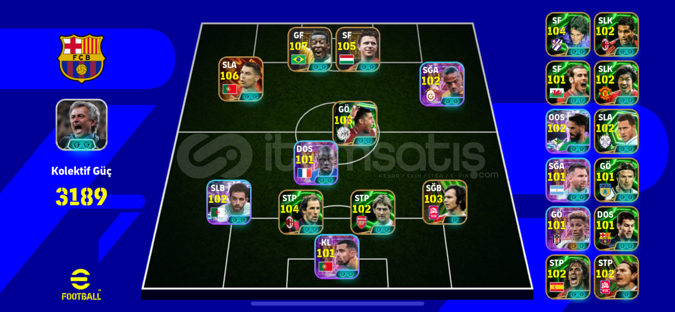 107 RONALDOBOMBACII BALEBOMBACIII SANEEE107 PELE105 PUSKASve daha epik oyuncularhesap emek hesaptır pazarlık az miktardırhesap android ve iPhone için tek bağdır asla sorun yaşamazsınız