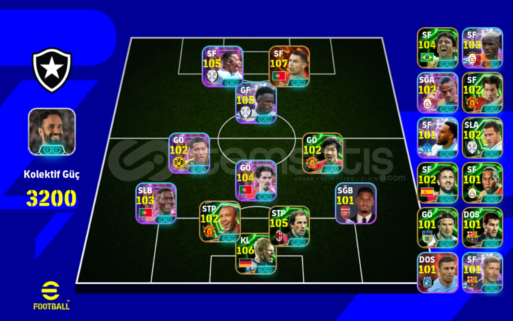 Hesap çok iyi tek bağ 107 ronaldo 105 mbappe 105 vini 105 bebeto 105 baresi 104 vitinha bombacı sane