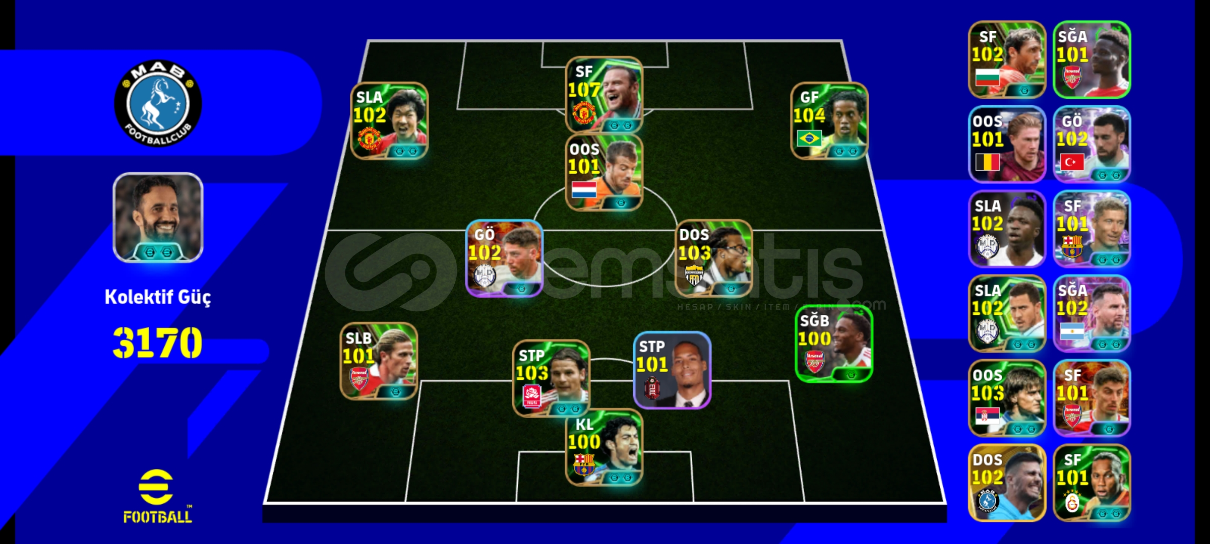 107 rooney 105 ronaldinho 102 valverde gibi kartlar mevcuttur kgsi daha artar max kgsi 3173 civari olur rezervi doludur.