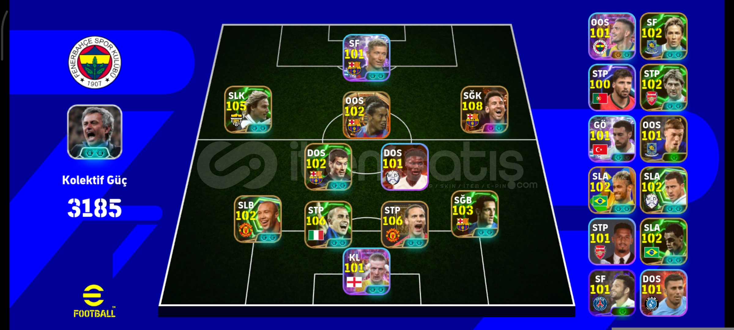 108 messi 106ferdinand 105 nedved ve daha fazlası konami id ile verilecektir yani mail sifre degisebilirsiniz google play bağlı degildir ve birsuru menajer vardir arsenal paketi de vardir