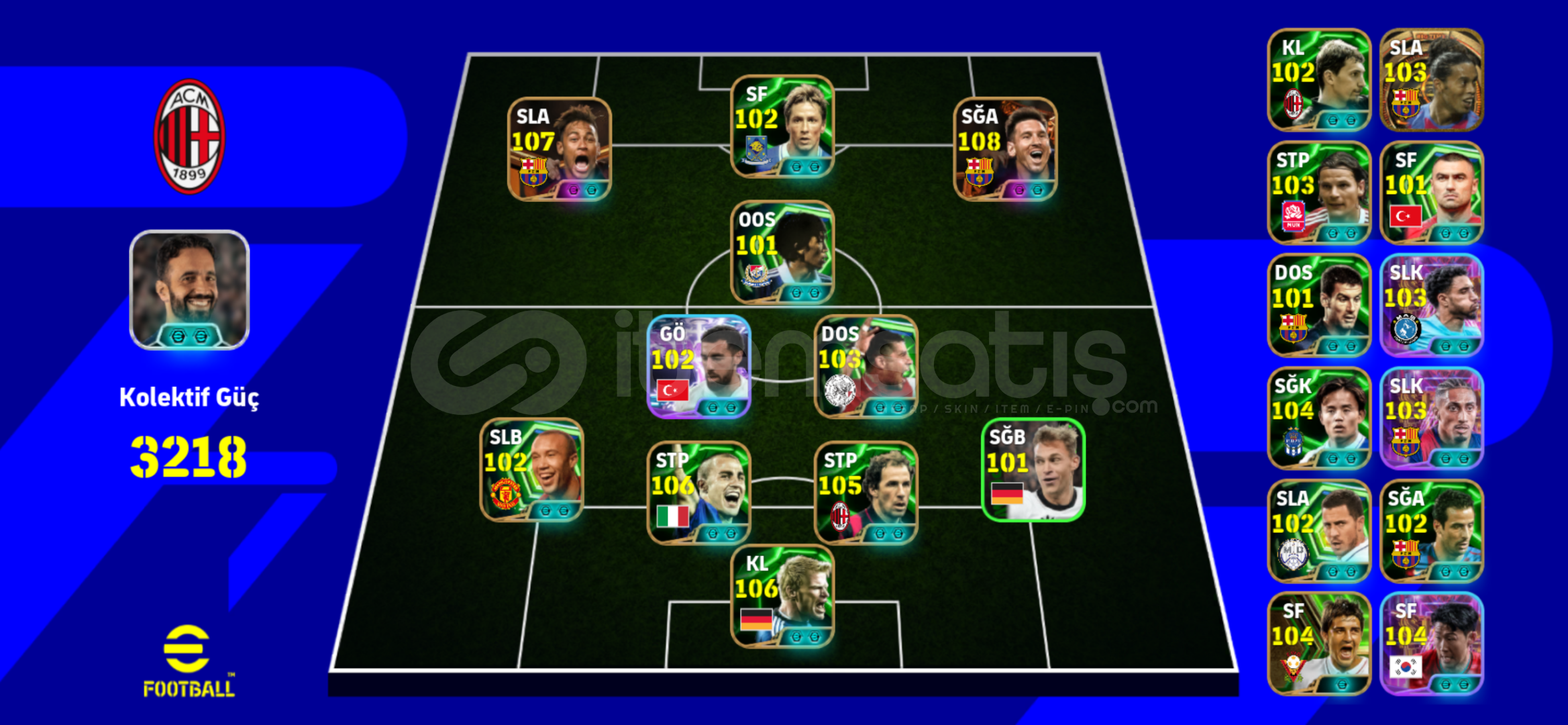 108 Messi107 Neymar105 Baresi107 cannavaro 105 Son105 Kahn