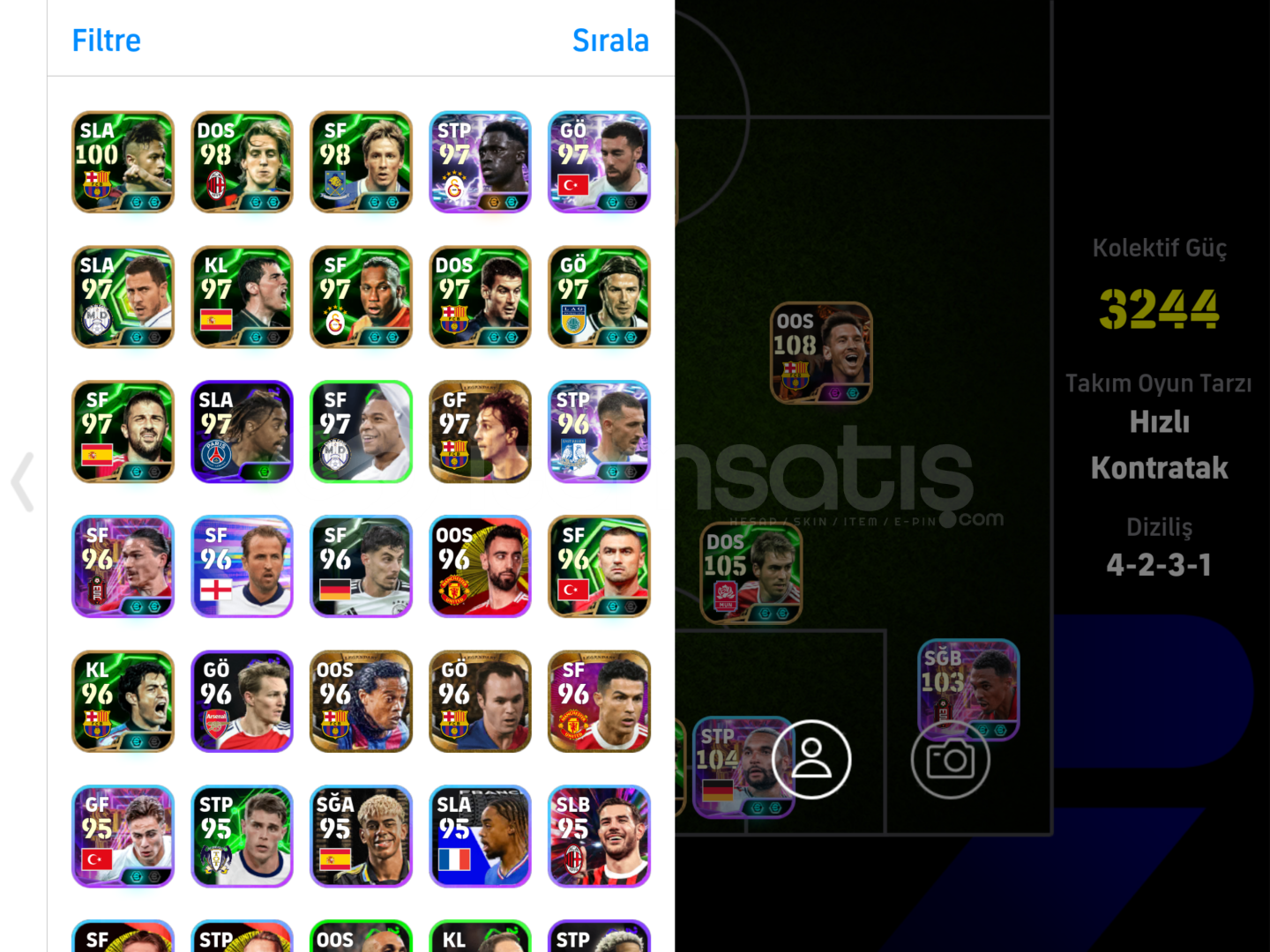 eksi mc yok tek bağ müq hesap108 messi107 neymar105 platini 105 casilas vb