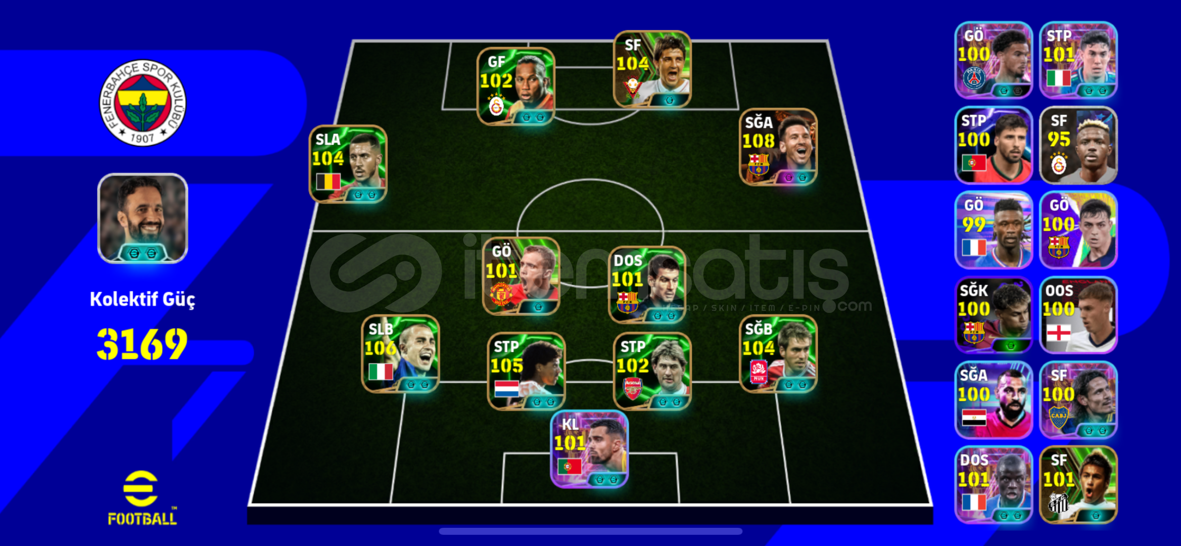 108 messi 106 cannavaro 105 Rjikard 104 Lahm104 david villa 104 hazard Belçika kartı ve chelse kartı Tek bağ hesabı sizin gmailinize bağlarken yardımcı olunacak