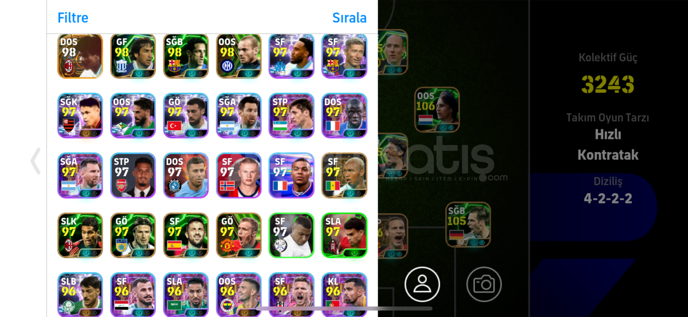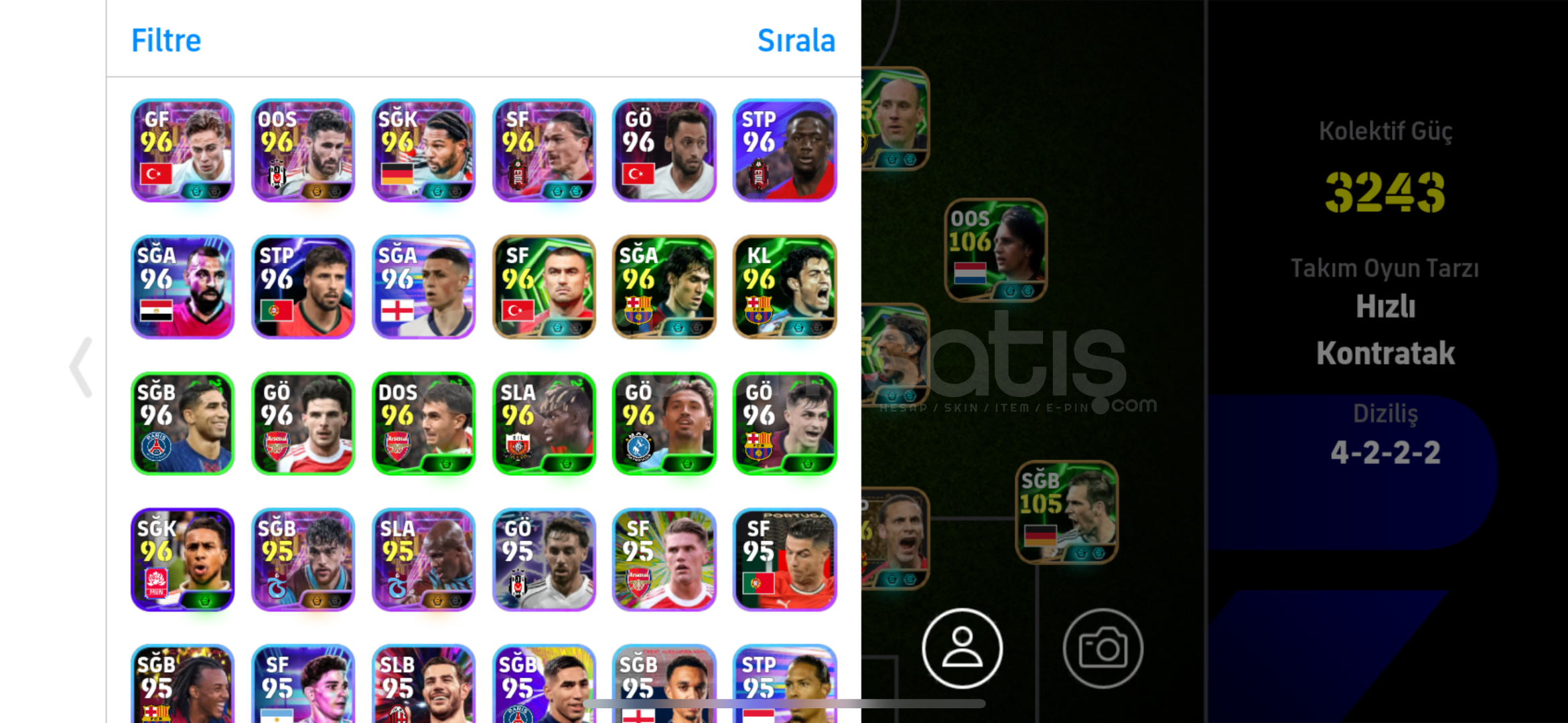 Hesapta iosta 10.400 coin vardır üstüne kadro dolu107 Suarez coller cruyff gibi oyuncular vardırtek bağ