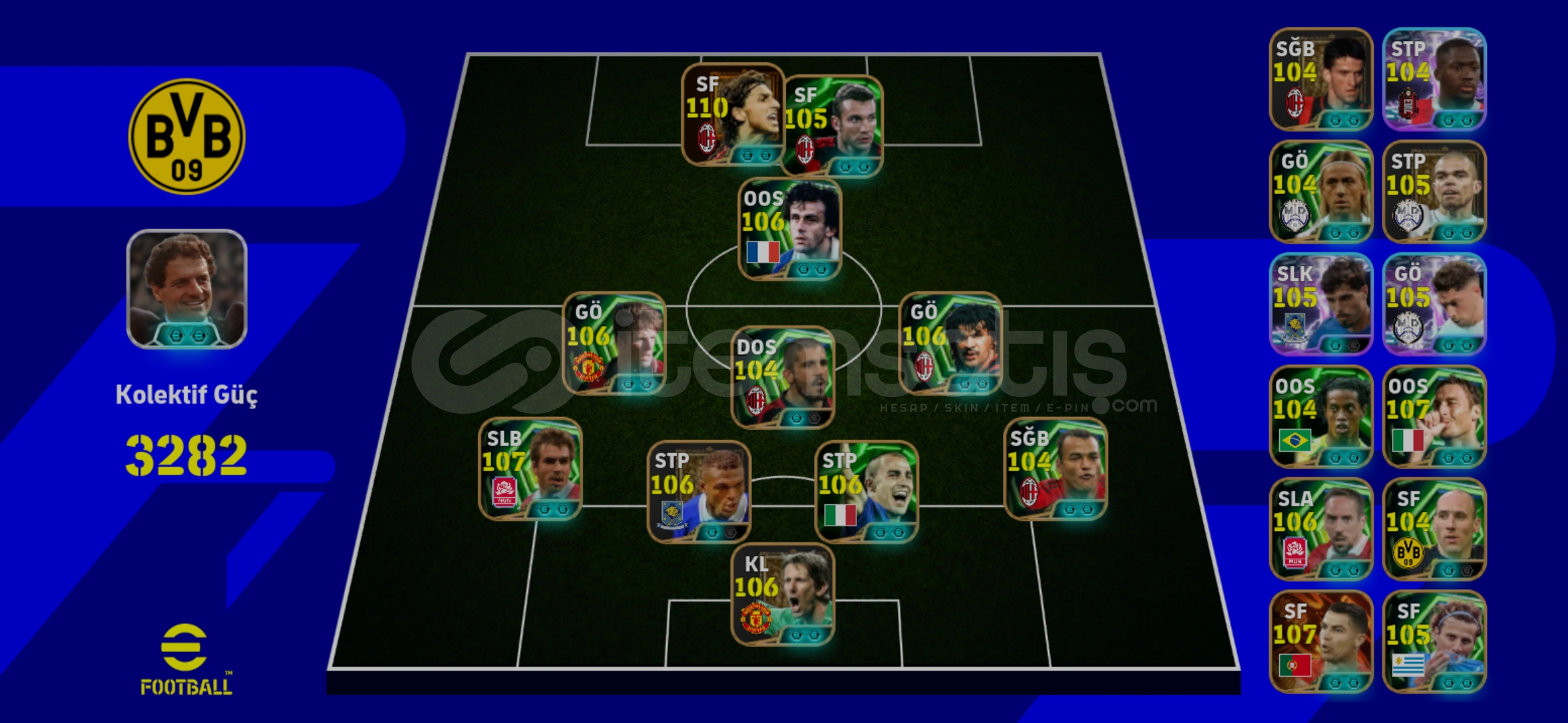 Bombacı saneli son lu 110 ibra 107 ronaldo bekcham shevchenko gullit platini full dolu hesap (kadro dışıda dolu)