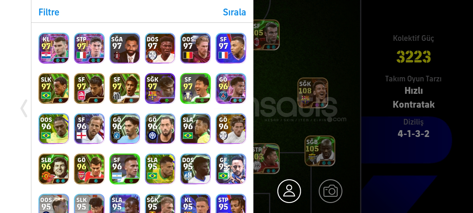 110 İBRAHİMOVİÇ 108 MESSİ107 CRUYFF 105 VİNİ JR.105 THURAMDEV GİBİ HESAP AŞIRI UYGUN FİYATA DM DEN PAZARLIK YAPILIR BOŞ YAPICAK YAZMASIN