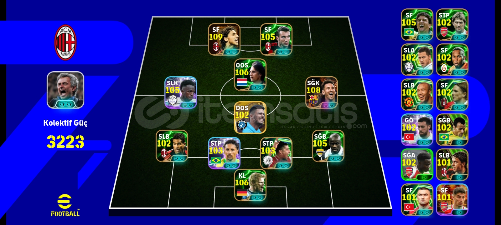 110 İBRAHİMOVİÇ 108 MESSİ107 CRUYFF 105 VİNİ JR.105 THURAMDEV GİBİ HESAP AŞIRI UYGUN FİYATA D...