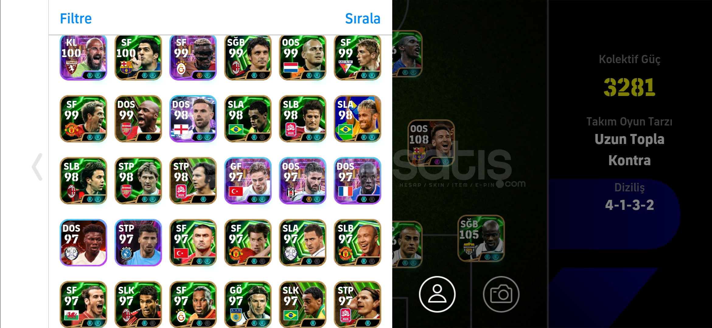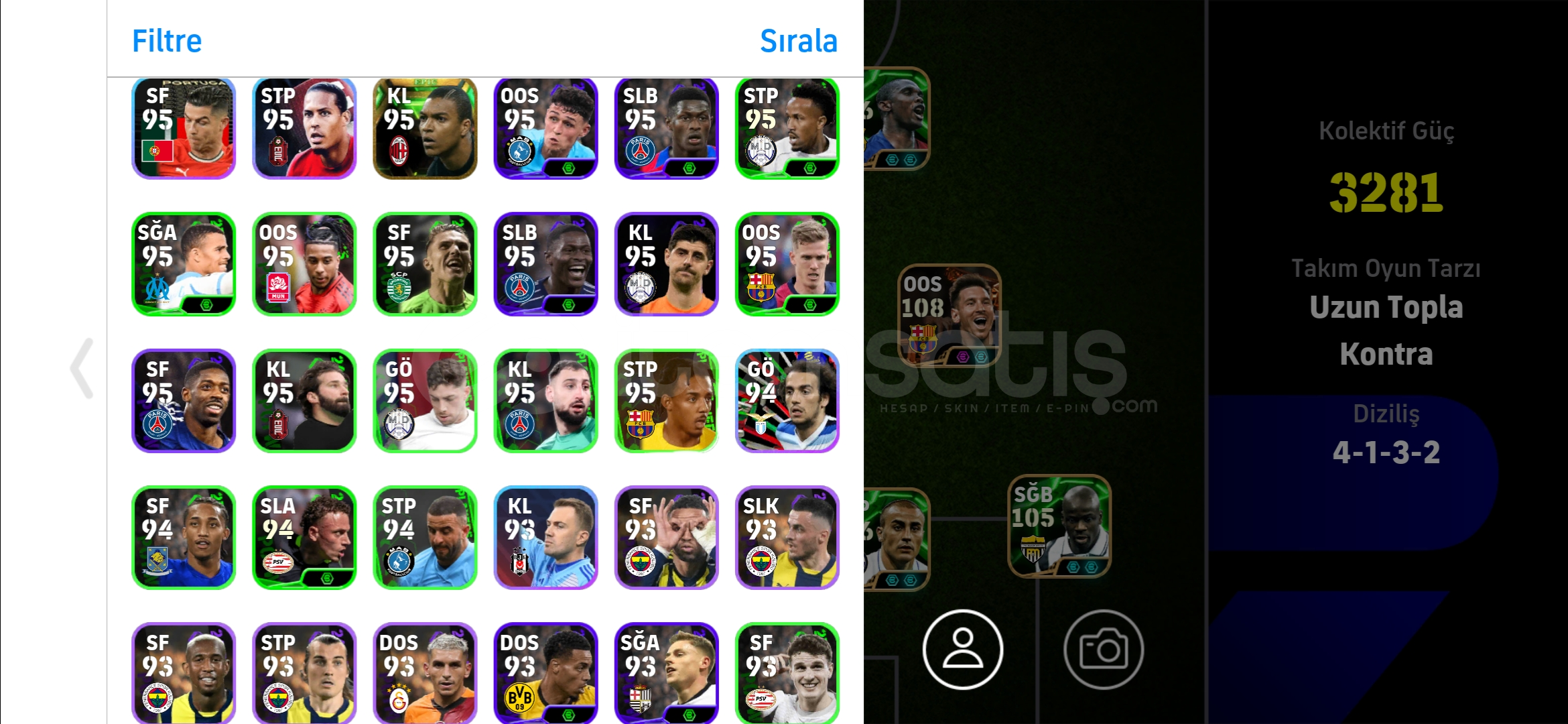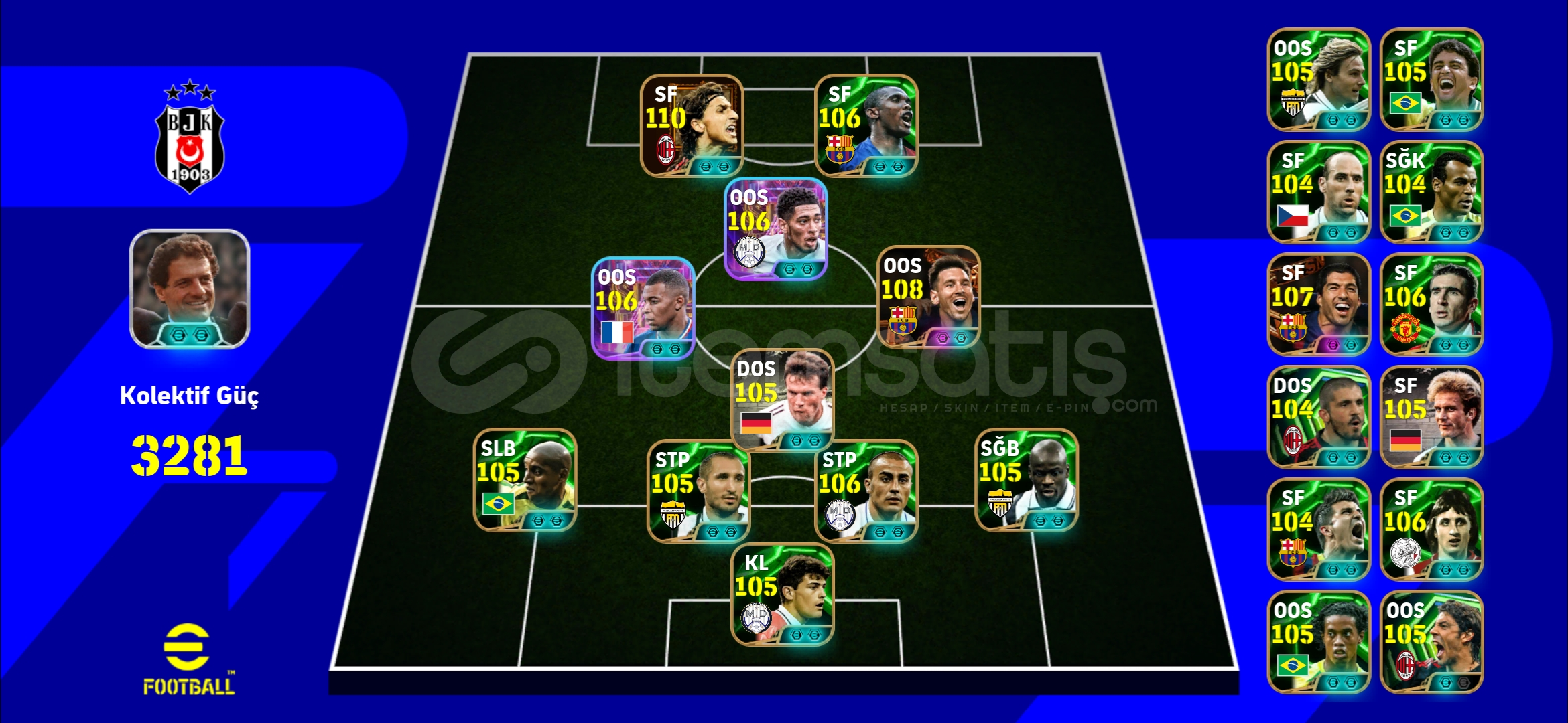 TEK BAĞ !!!6 ADET BOMBACI (MESSİ/MBAPPE/VİLLA/BALE/BURAK/RAFA SİLVA)8 ADET MENAJER !REZERV FULL110 İBRAHİMOVİC108 MESSİ107 SUAREZ106 ETO106 CRUYFF106 CANTONA106 BELLİGHAM106 CANNAVARO105 RUMMENİGGE105 NEDVED105 THURAM105 RONALDİNHO105 R. CARLOS105 MATTHAUS105 CASİLLAS105 CHİELLİNİ105 BEBETO105 DAVİD VİLLA105 RUİ COSTA104 JAN KOLLER104 OSİMHEN104 CAFU104 GATTUSO103 VİEİRA103 ODDOVS VS ...ALANA...