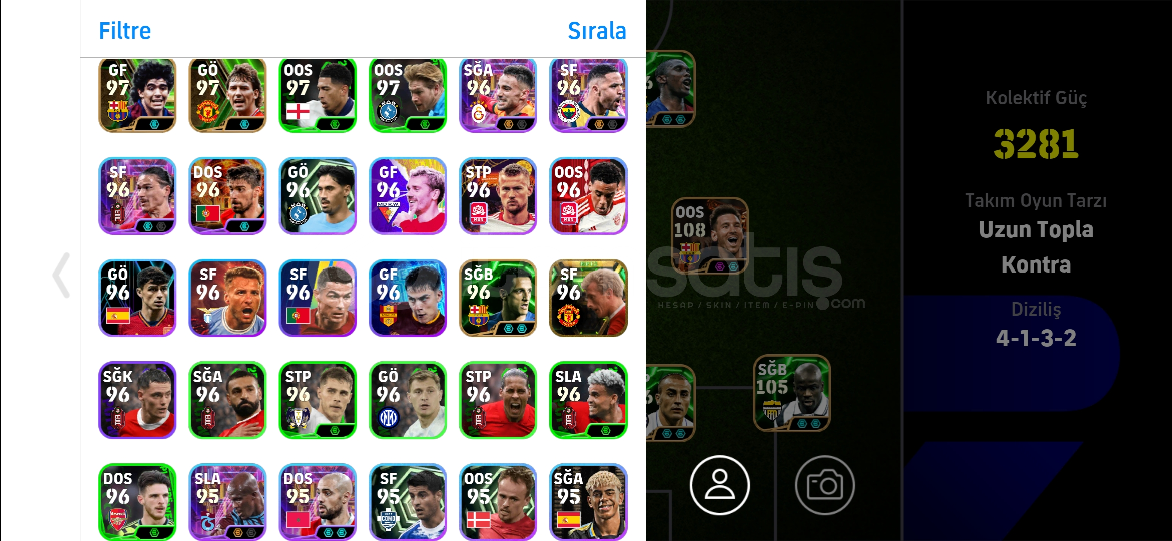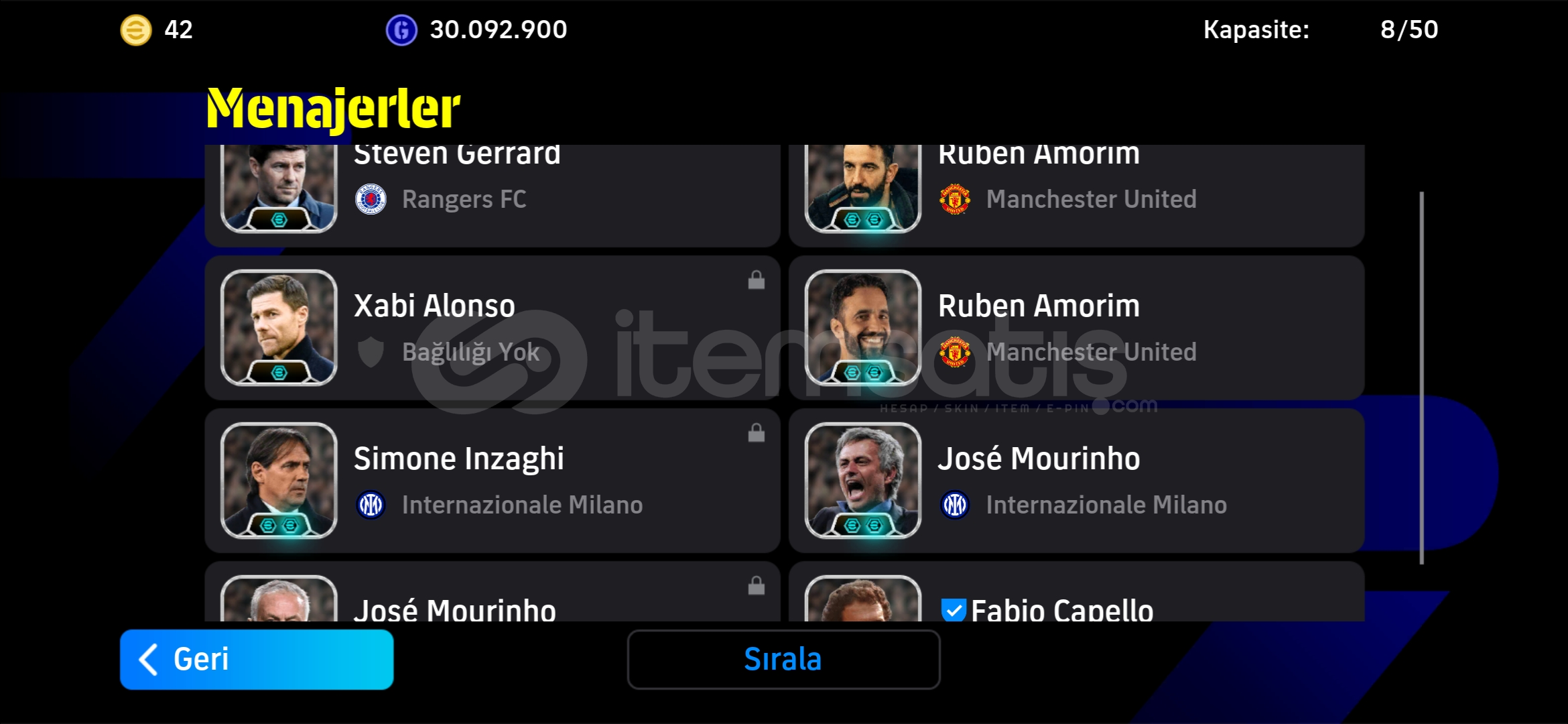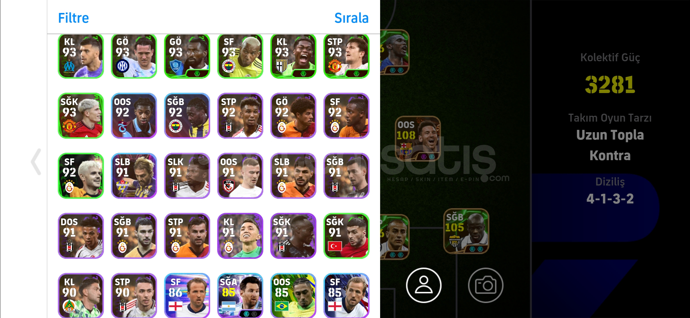 TEK BAĞ !!!6 ADET BOMBACI (MESSİ/MBAPPE/VİLLA/BALE/BURAK/RAFA SİLVA)8 ADET MENAJER !REZERV FULL110 İBRAHİMOVİC108 MESSİ107 SUAREZ106 ETO106 CRUYFF106 CANTONA106 BELLİGHAM106 CANNAVARO105 RUMMENİGGE105 NEDVED105 THURAM105 RONALDİNHO105 R. CARLOS105 MATTHAUS105 CASİLLAS105 CHİELLİNİ105 BEBETO105 DAVİD VİLLA105 RUİ COSTA104 JAN KOLLER104 OSİMHEN104 CAFU104 GATTUSO103 VİEİRA103 ODDOVS VS ...ALANA...