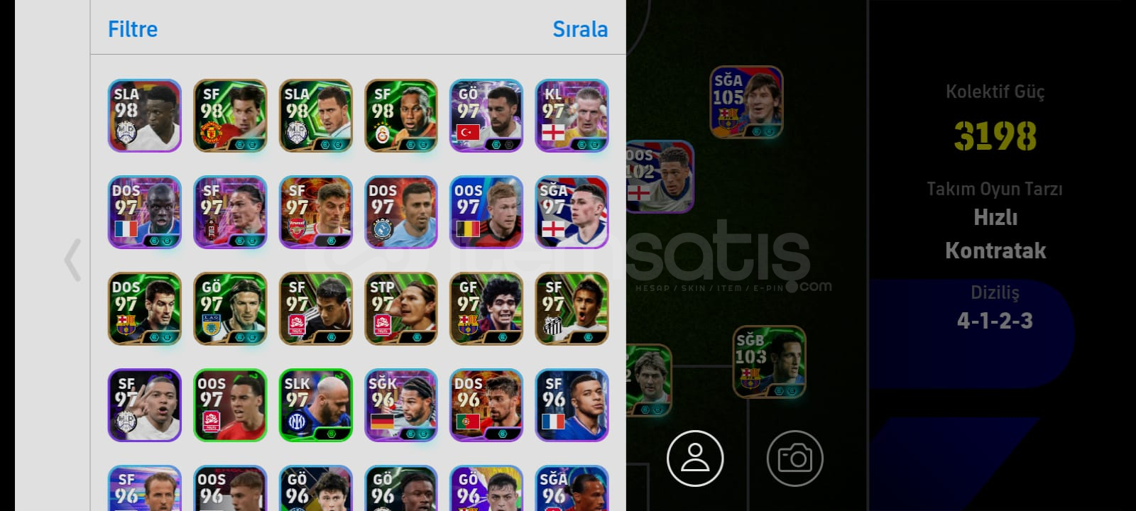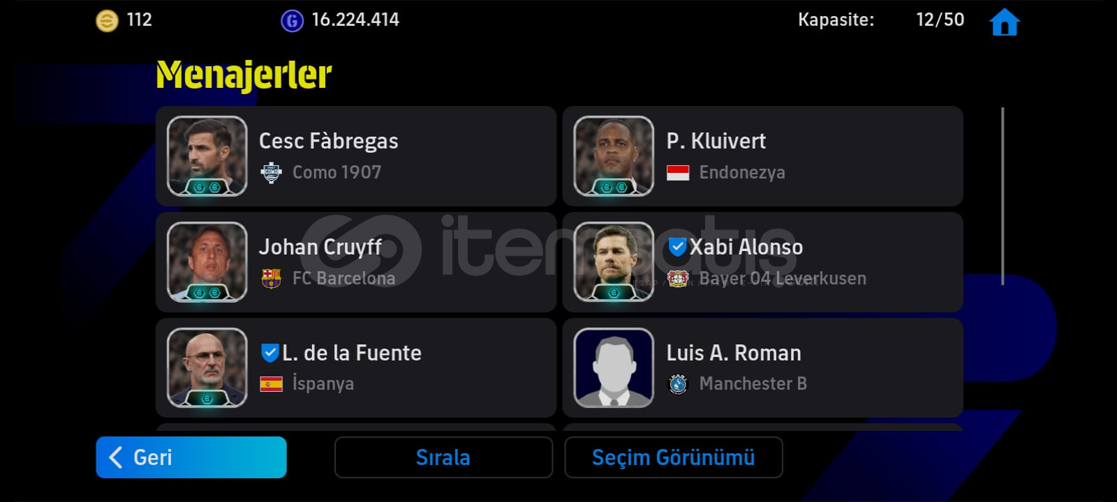 Özel menejerler Özel oyuncular 1198 kollektif3 tane 105 oyuncu 106 kaleci Hesap tek bağ konami id direkt e-posta ile verilecektir103 pomba cı Sane 103 lük robotu carlos ve Roberto Firmino102 torres102 guti