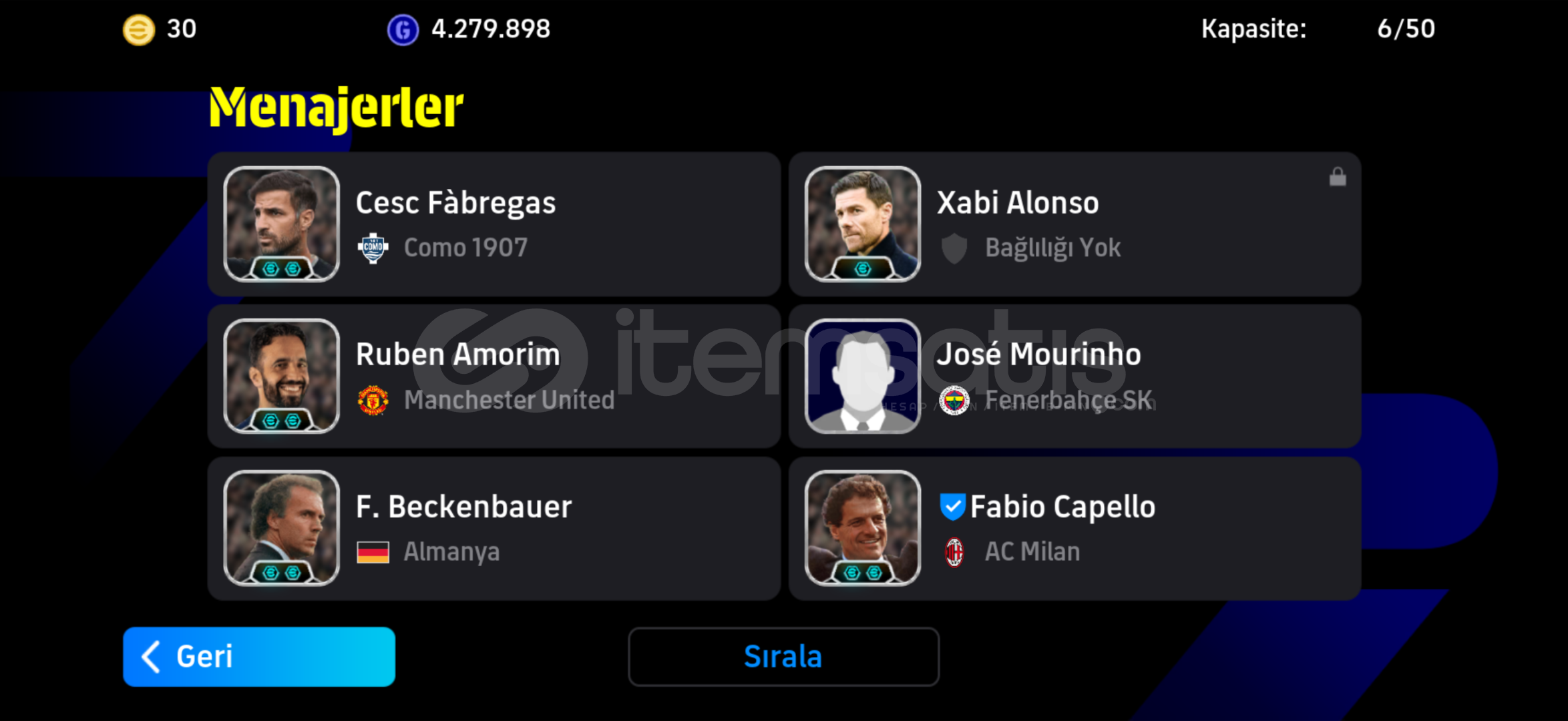 Hesapta boş paketler açılmamıştır, özenle açılmıştır. Her türlü oyun tarzına gider 2 tane bombacı 2 tane ortacı kanadı olan bi hesaptır.Oyuncu çeşitliliği olan keyifli bir hesaptır, rezervi doludur.Eksi MC, çift bağ gibi bi durum yoktur.Az da olsa pazarlık payı vardır.Gece 11den önce alınırsa hemen teslimat yaparım. (Almadan ö...
