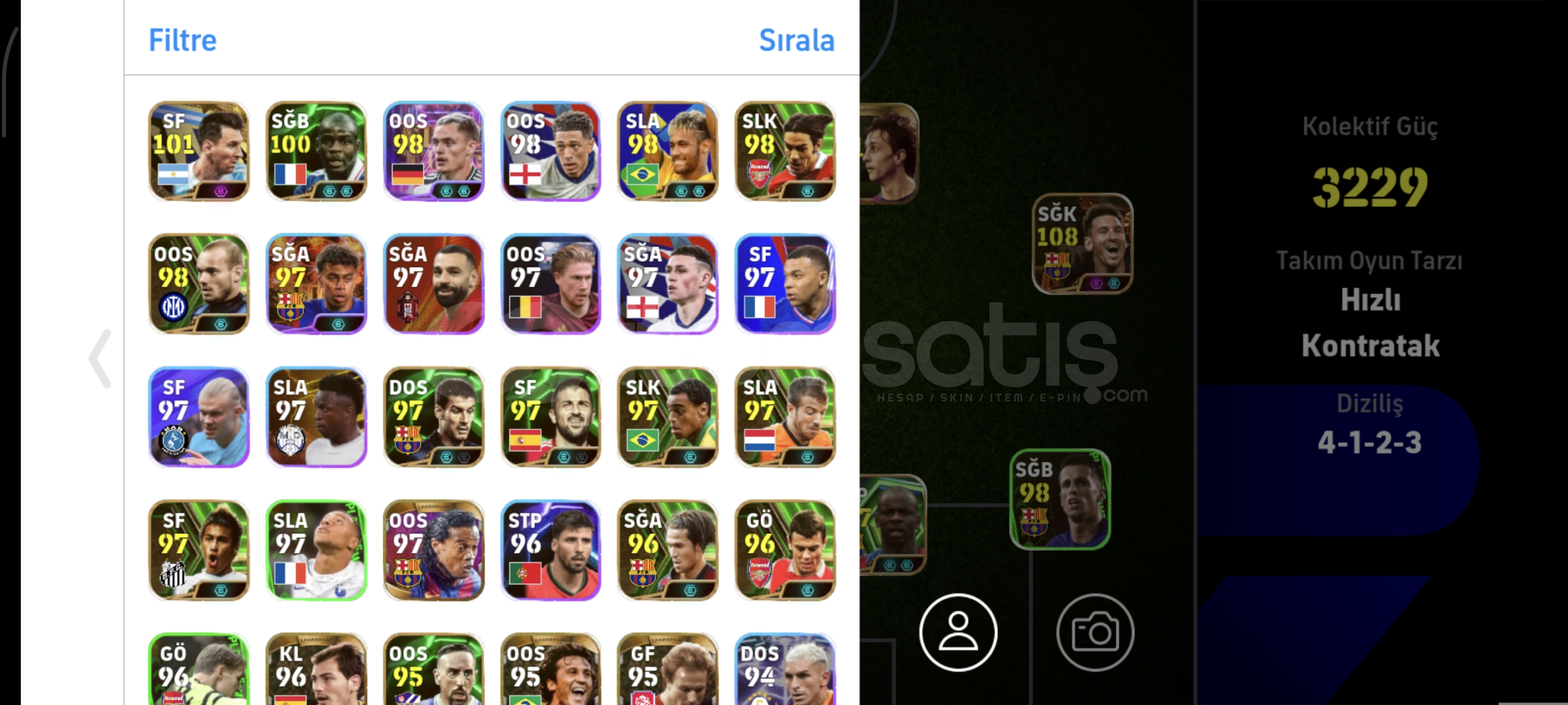 ACİL SATILIK HESAP 108 MESSİ105 ETO105 RONALDİNHO 105 GRİEZMANN107 THURAM104 VAN DİJK105 BARESİ105 Suarez105 SCHMEİCHEL105 NEYMARESKİ OYUNCULAR OLARAK;CARLOS PUYOLCAMPELLBATİSTUTANEDVEDZİCORUMMENİGGEMARADONABİRAZ PARAYA SIKIŞTIM FİYATTA YARDIMCI OLURUM