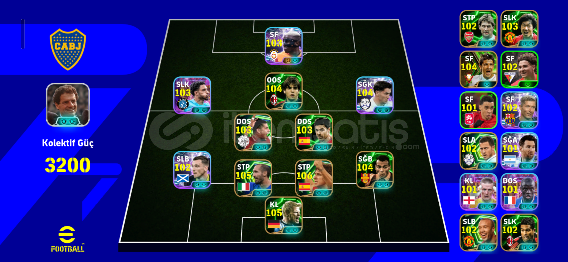 2 farklı 104 osimhen(Big-Show time)104 Brahim Diaz104 kaka103 marmoush103 Xabi Alonso106 Puyol105 Cheilini104 Cafu105 Oliver Kahn103 Rijkard103 Park Ji Sung