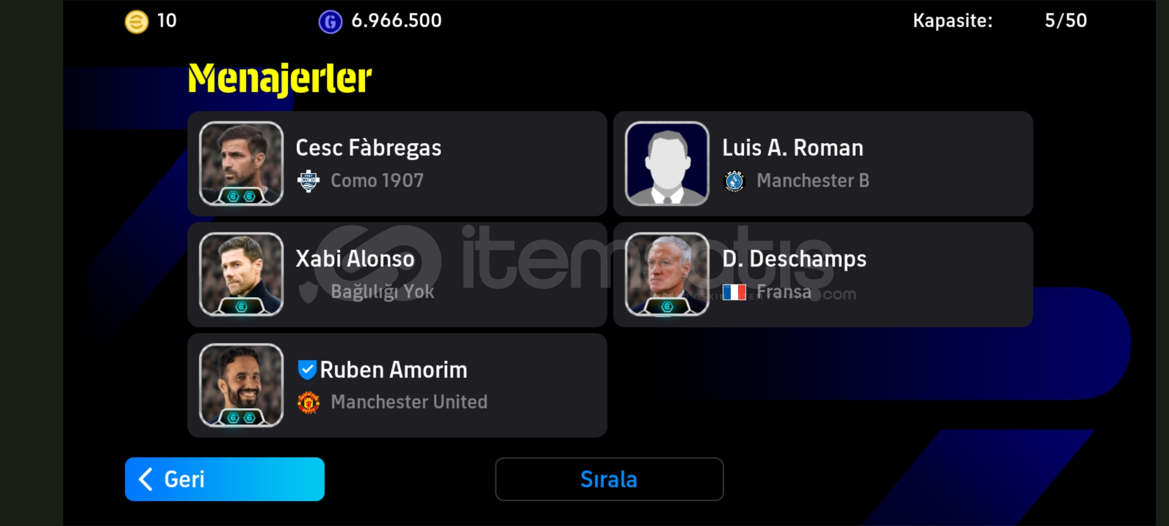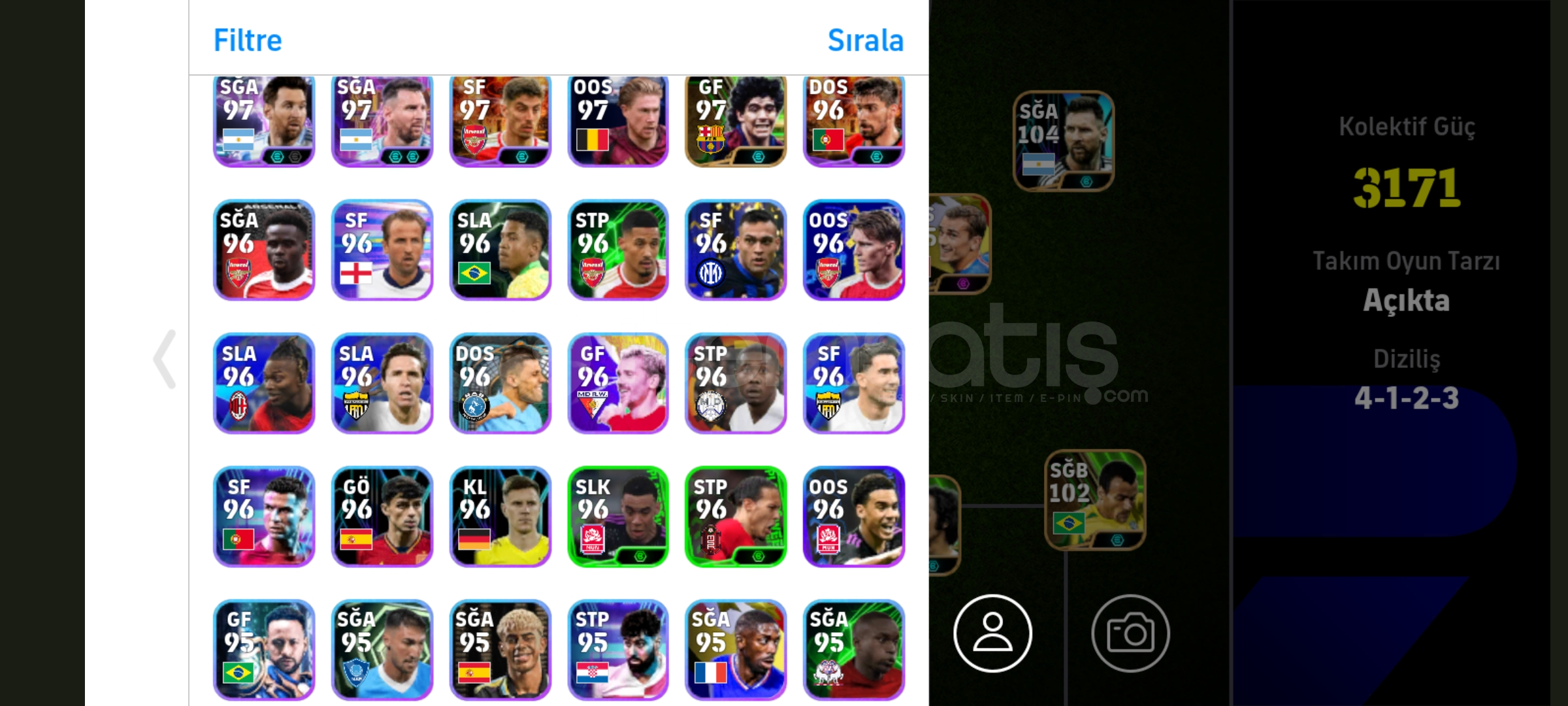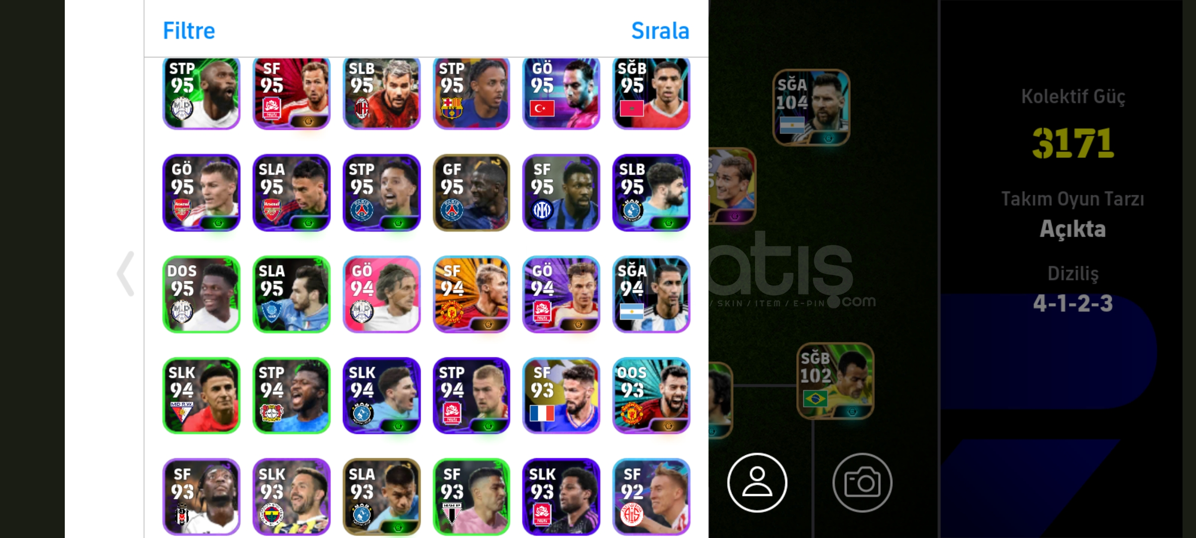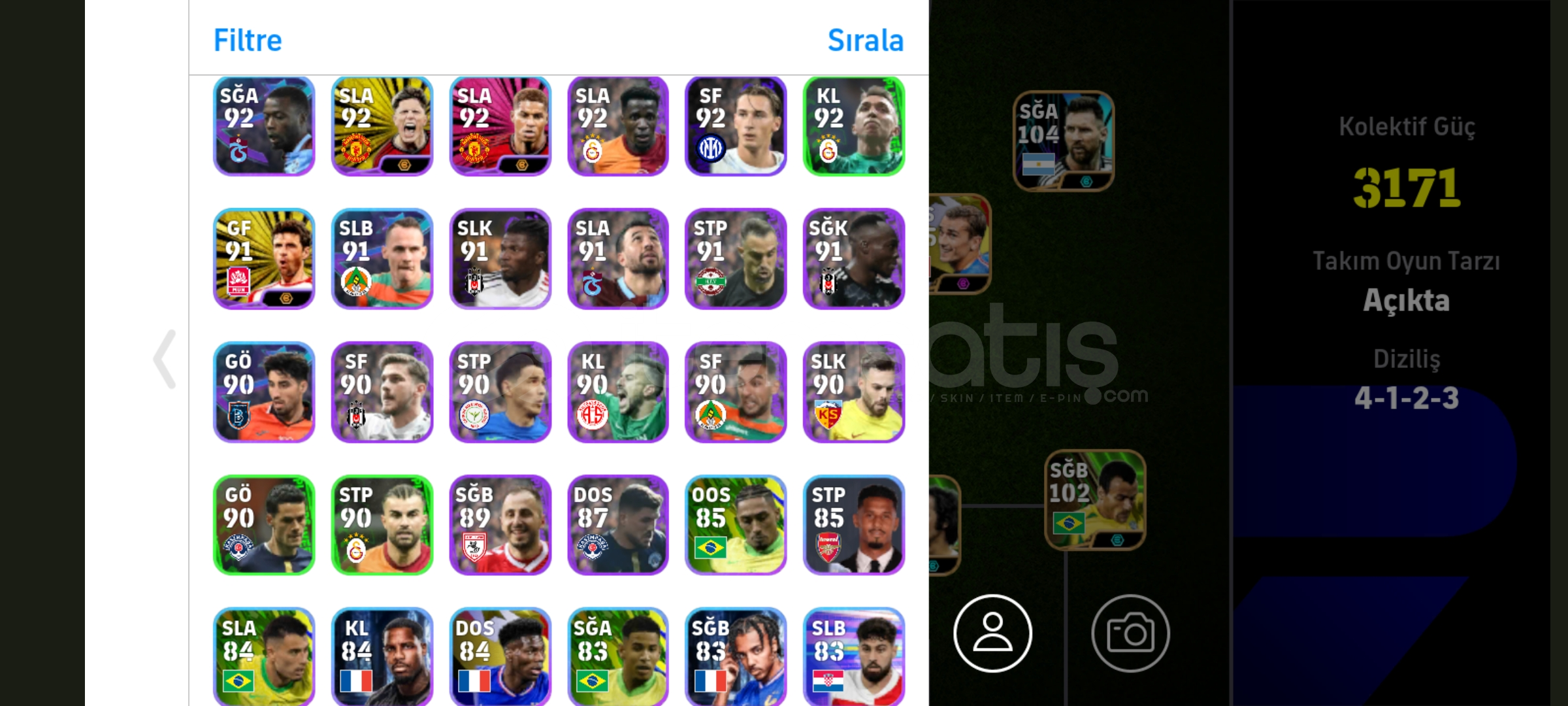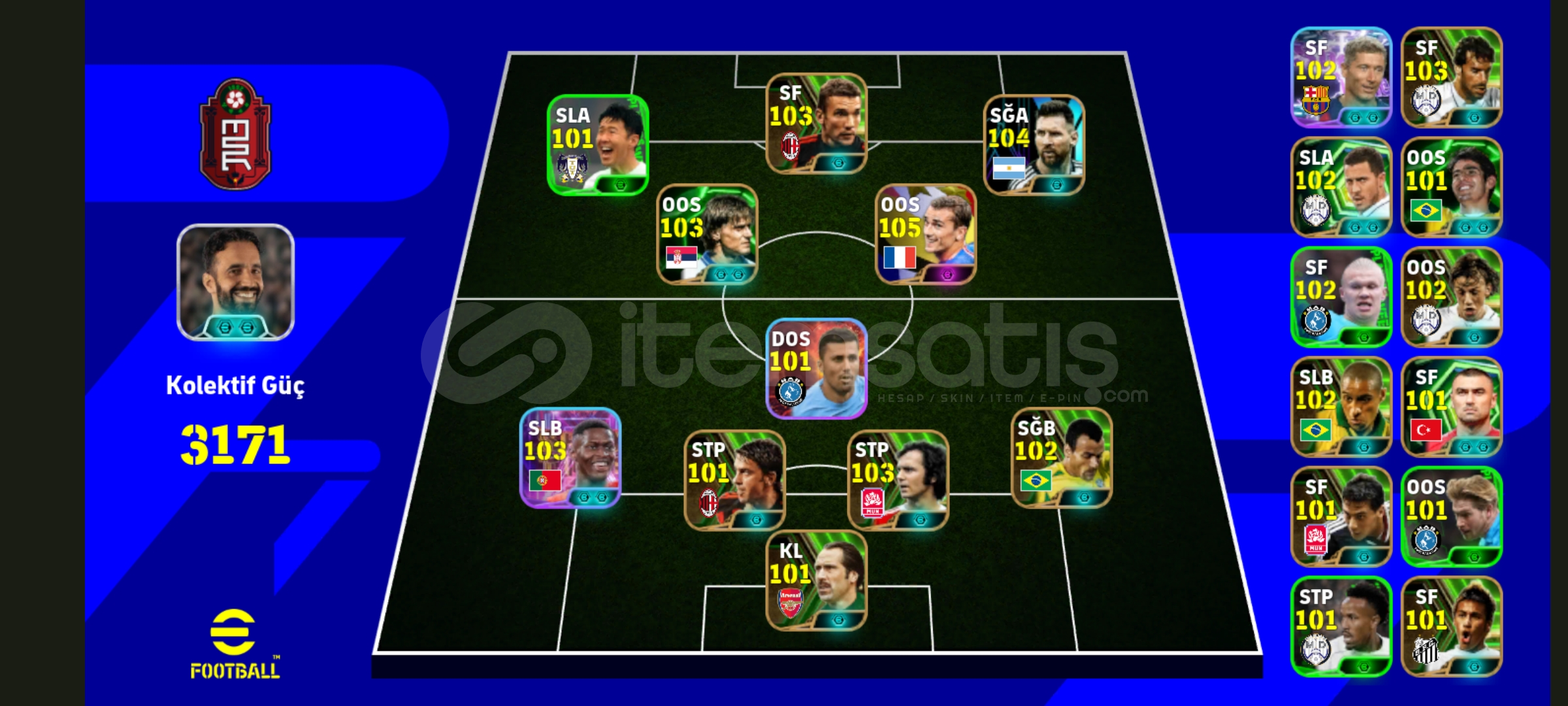 105 griezmann 104 Messi 103 shevcenko ve daha fazlası bu hesaptadır 4 tane güçlendiricili menajer bulunmaktadır hesap tek bağdır indirim olur