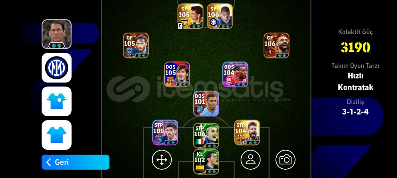 105 BAGGİO106 ADRİANO105 BOMBACİ KVARA106 BOMBACİ SALAH104 OLİSE105 MESSİ100 BARELO106 CANNAVARO104 PİQUE102 CAS...