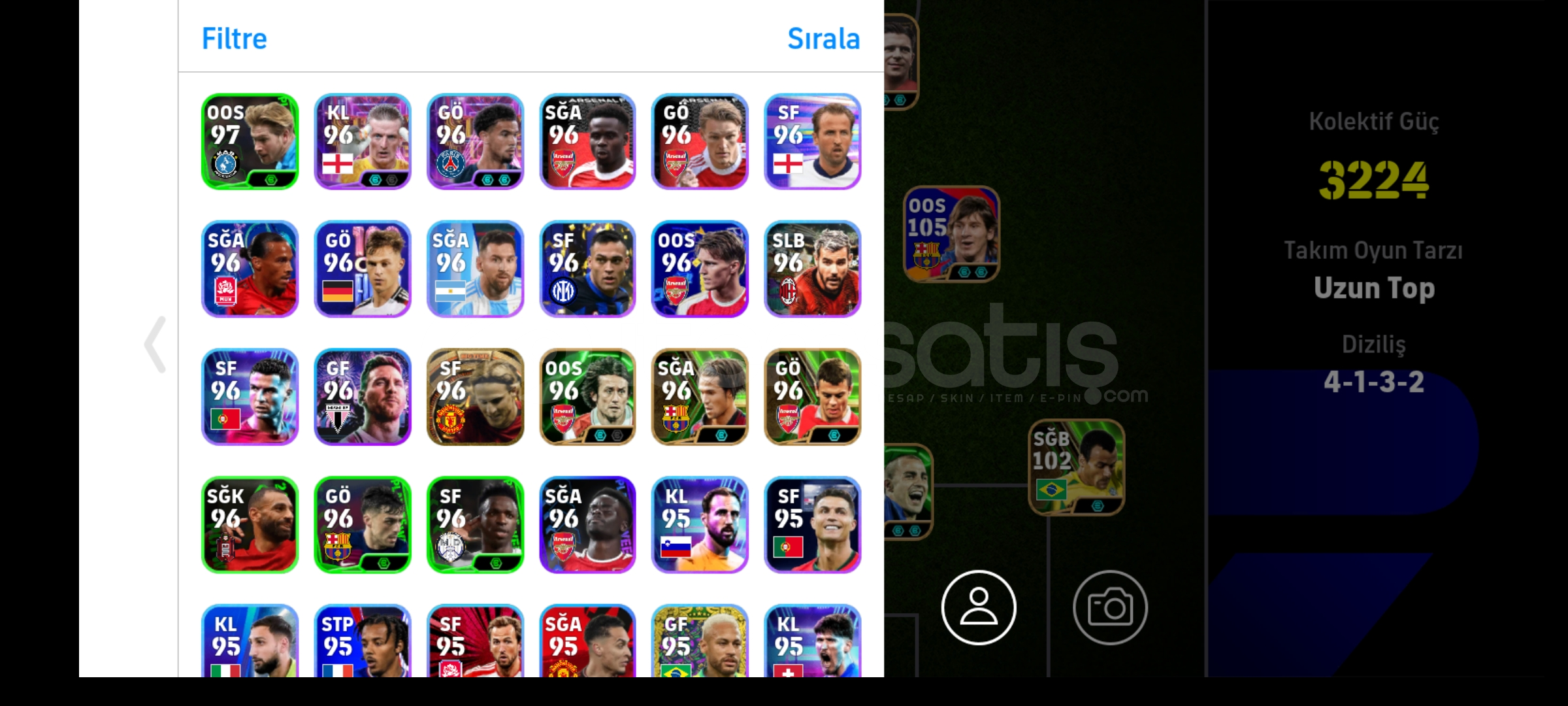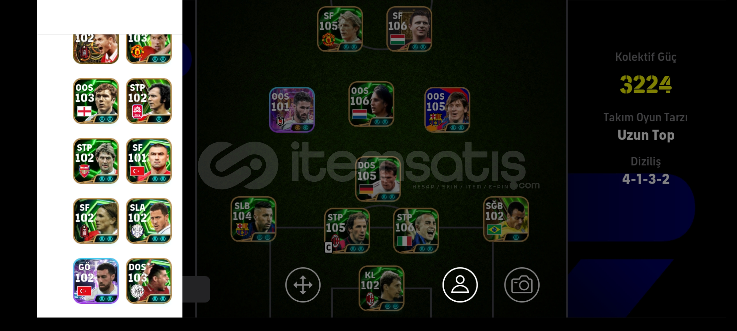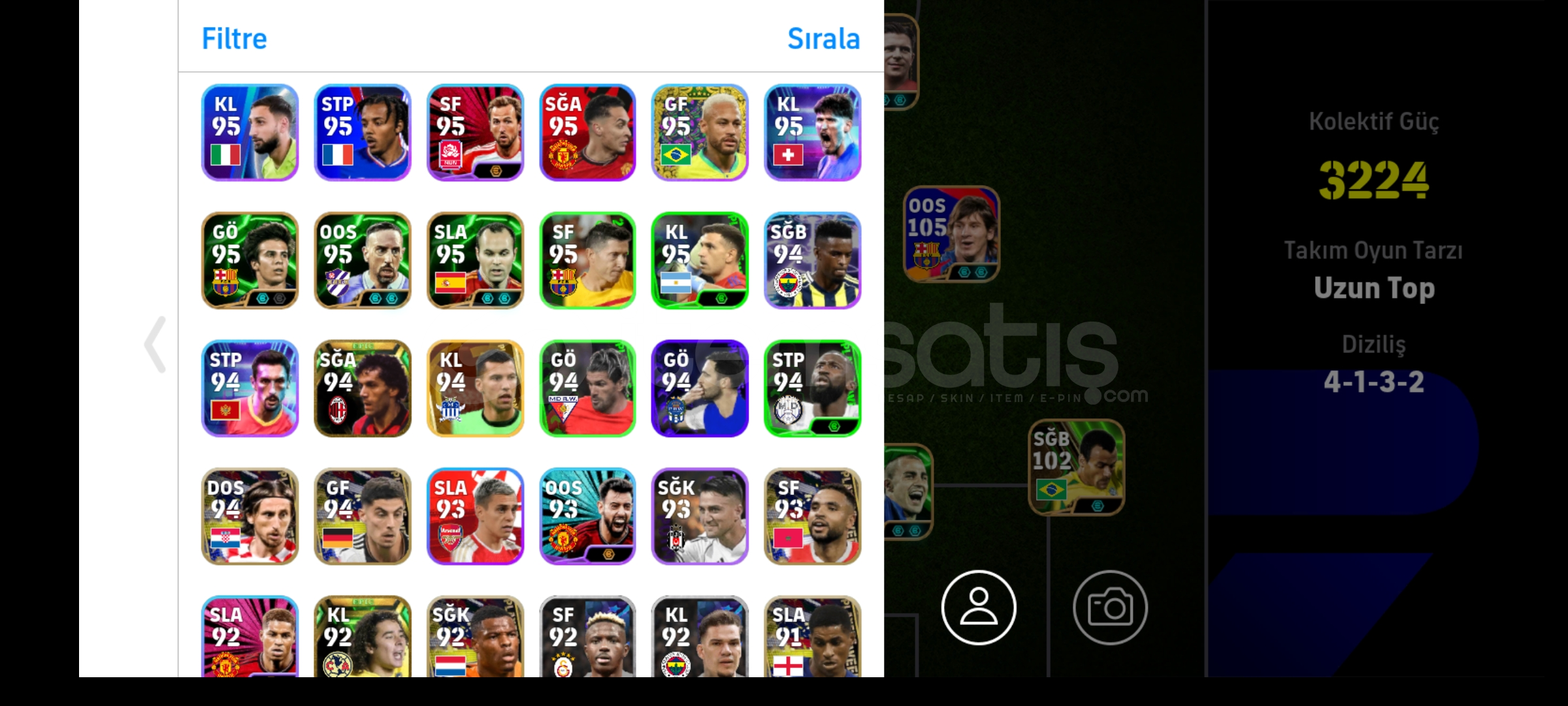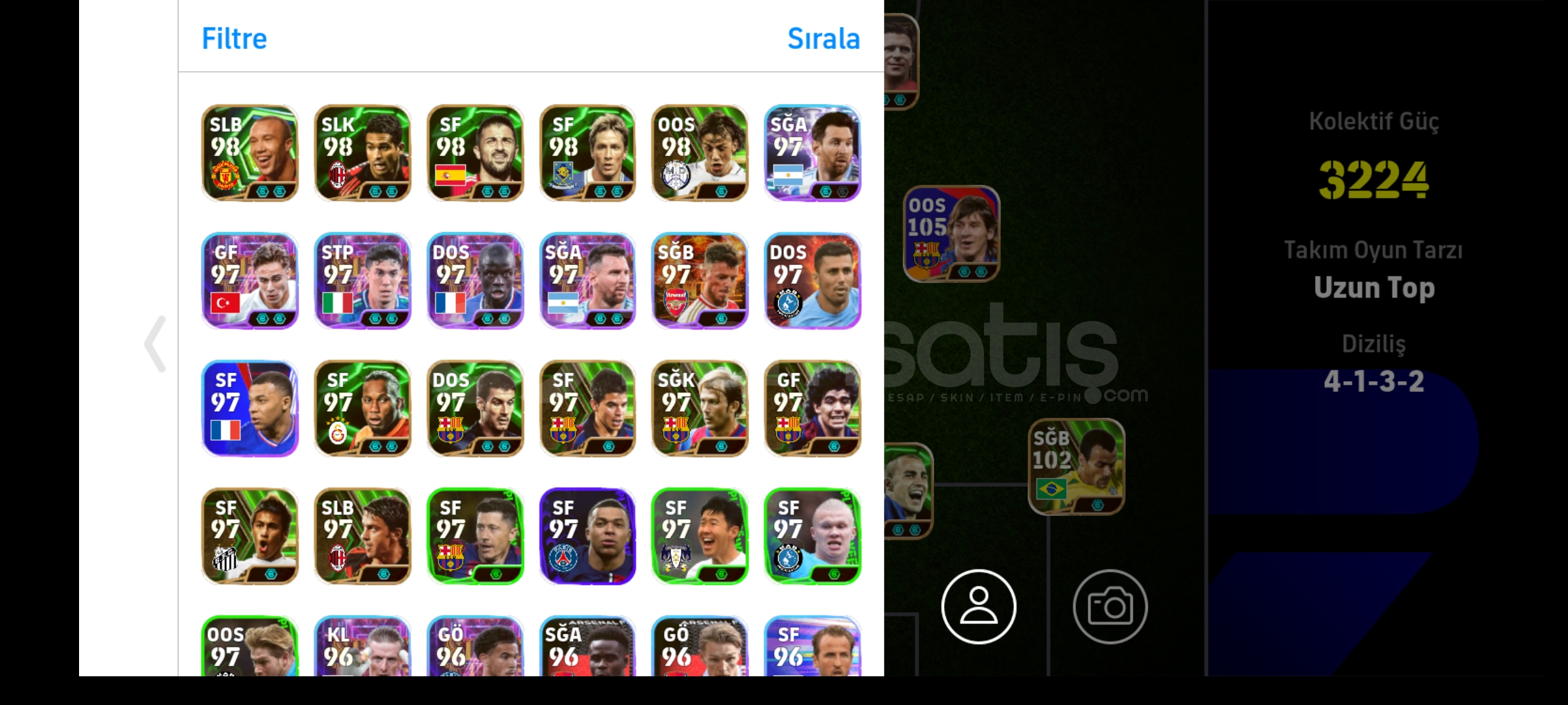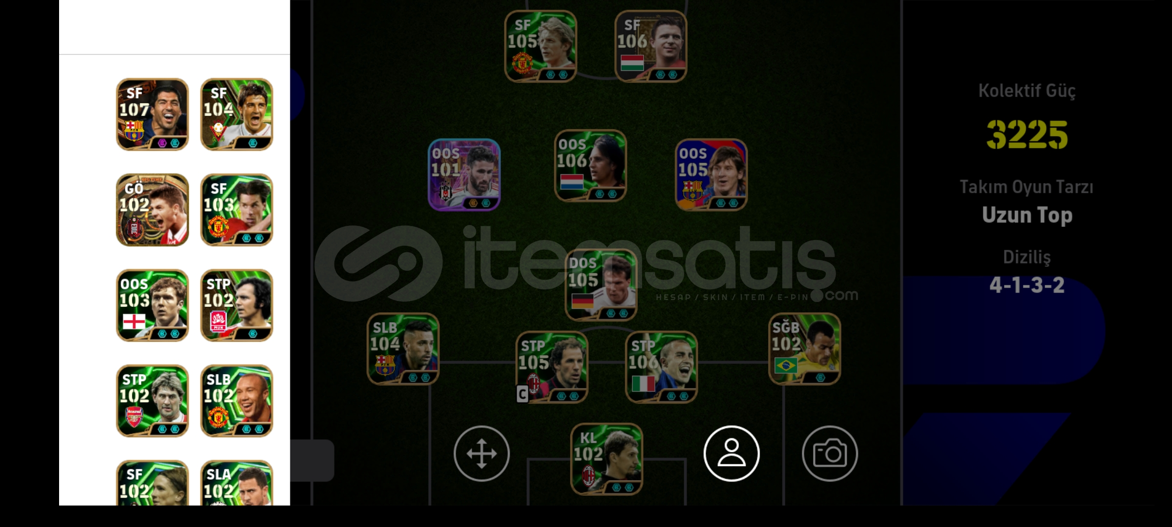 2 bombacı ( Rafa silva,Burak Yılmaz) efsane 3225 pes hesabı . Nadir kartlar,klasman için uygundur . 2 bağda kendi üst&...