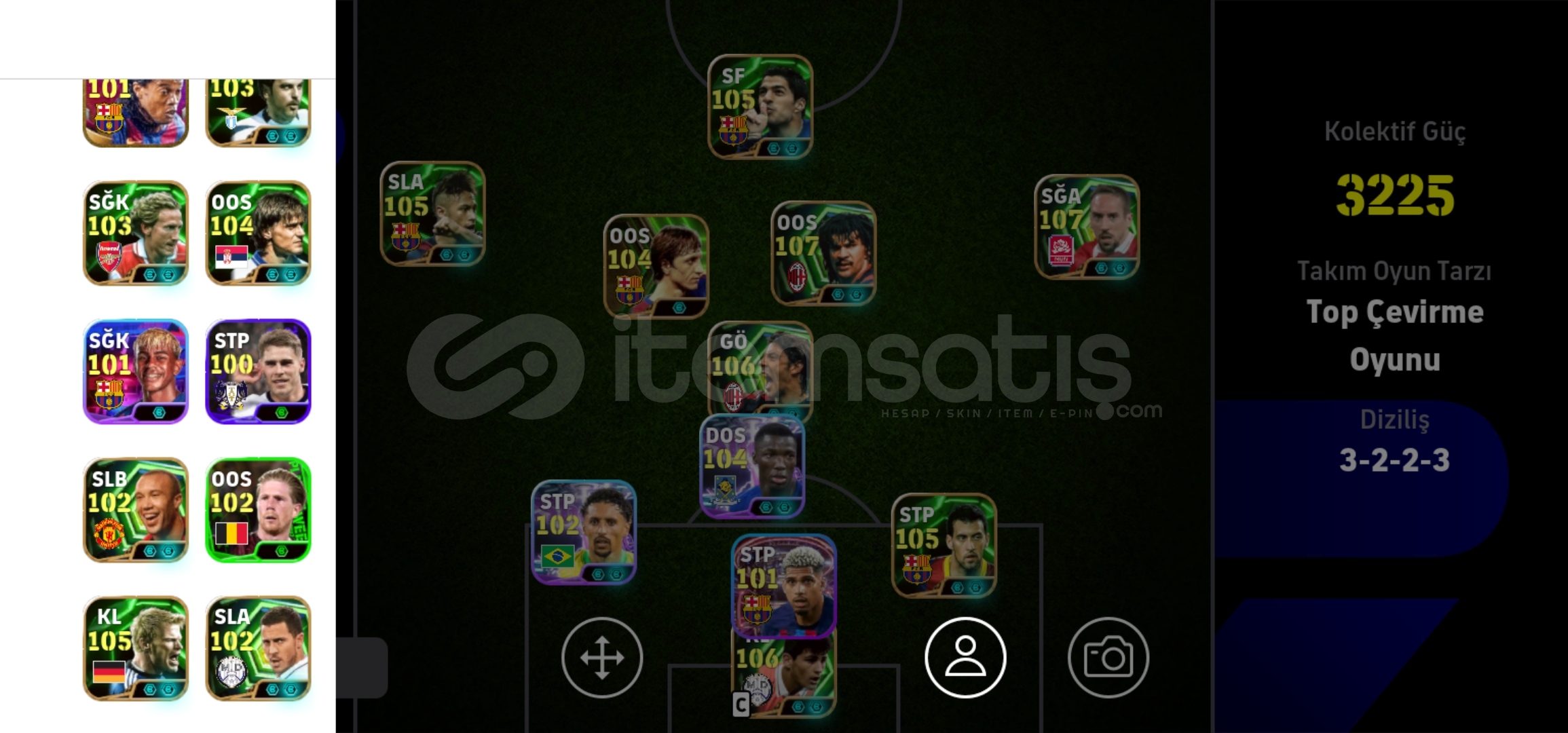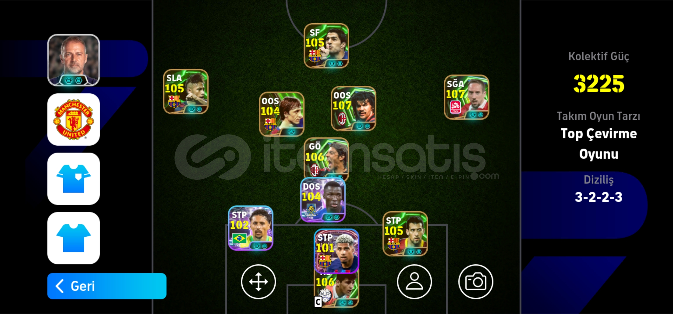 Hesap 5 senedir benim elimde geziyor satmak istemezdim fakat paraya nakit ihtiyaç malum ekonomi yeteri kadar dp ve gp bulunmakta orta kafa gol veya kanatlardan oyun için çok iyi durumda bazı oyuncular özel basım yapılmıştır tahminen 3230 üstüne çıkıyordur