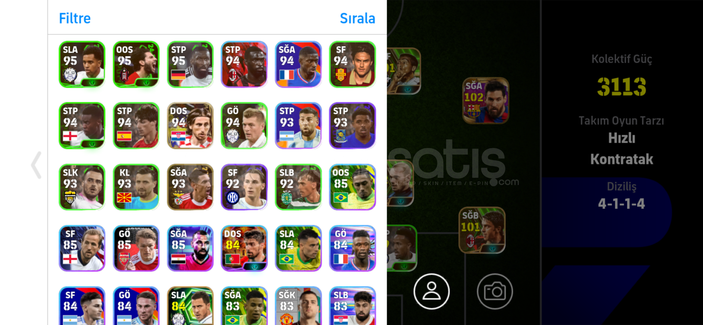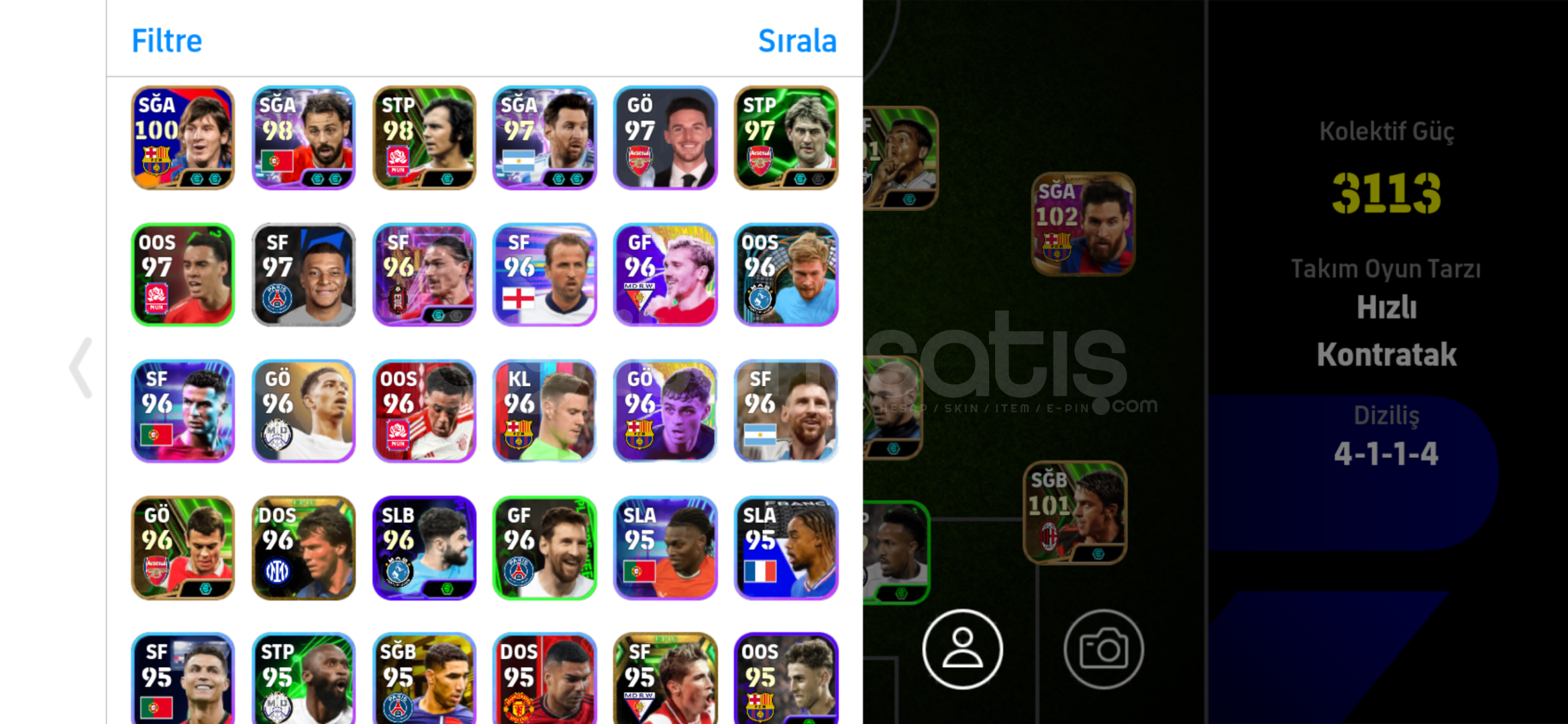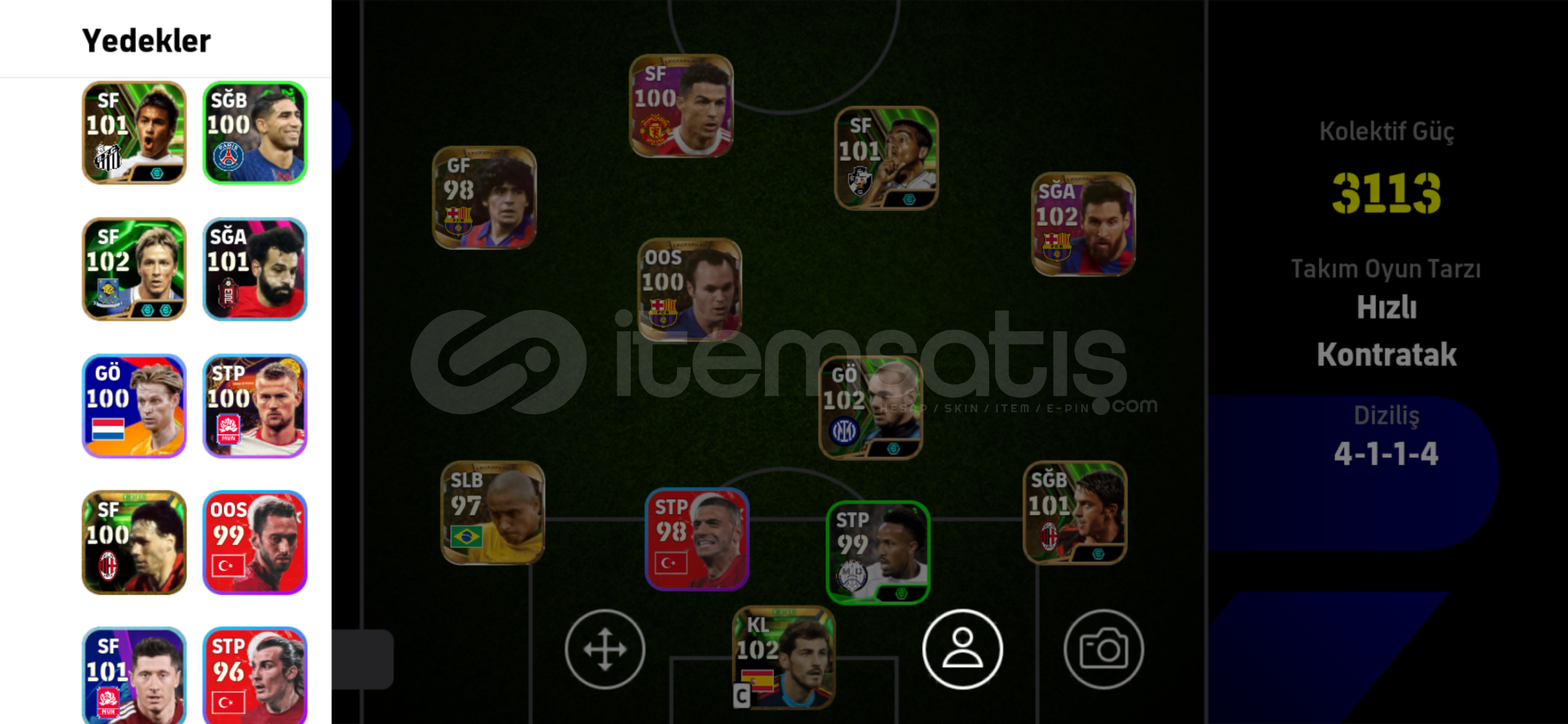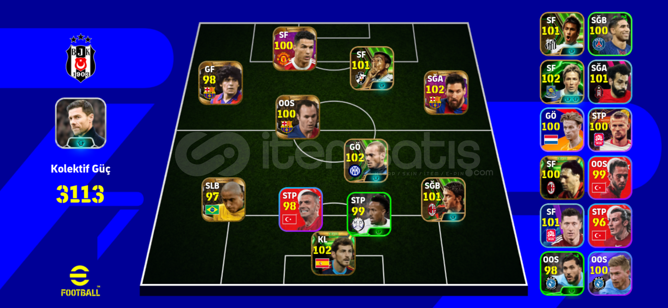 Ronaldo 100, messi 105 , iniesta 100, Maradona 98, carlos97 , vb sayamadığım bir çok kart …..