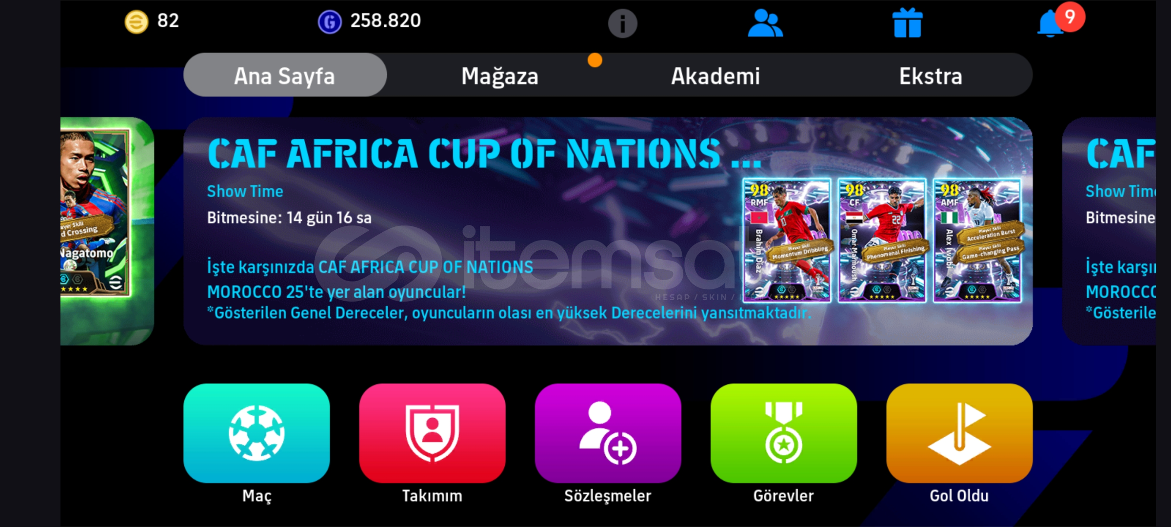 PAZARLIK MEVCUTTUR!2024 TARIHLI EFOOTBALL HESABI YAKLAŞIK 1000TL YE YAKIN PARA HARCANMIŞ.HESAP İÇERİSİNDE FARKLI 15 AD...
