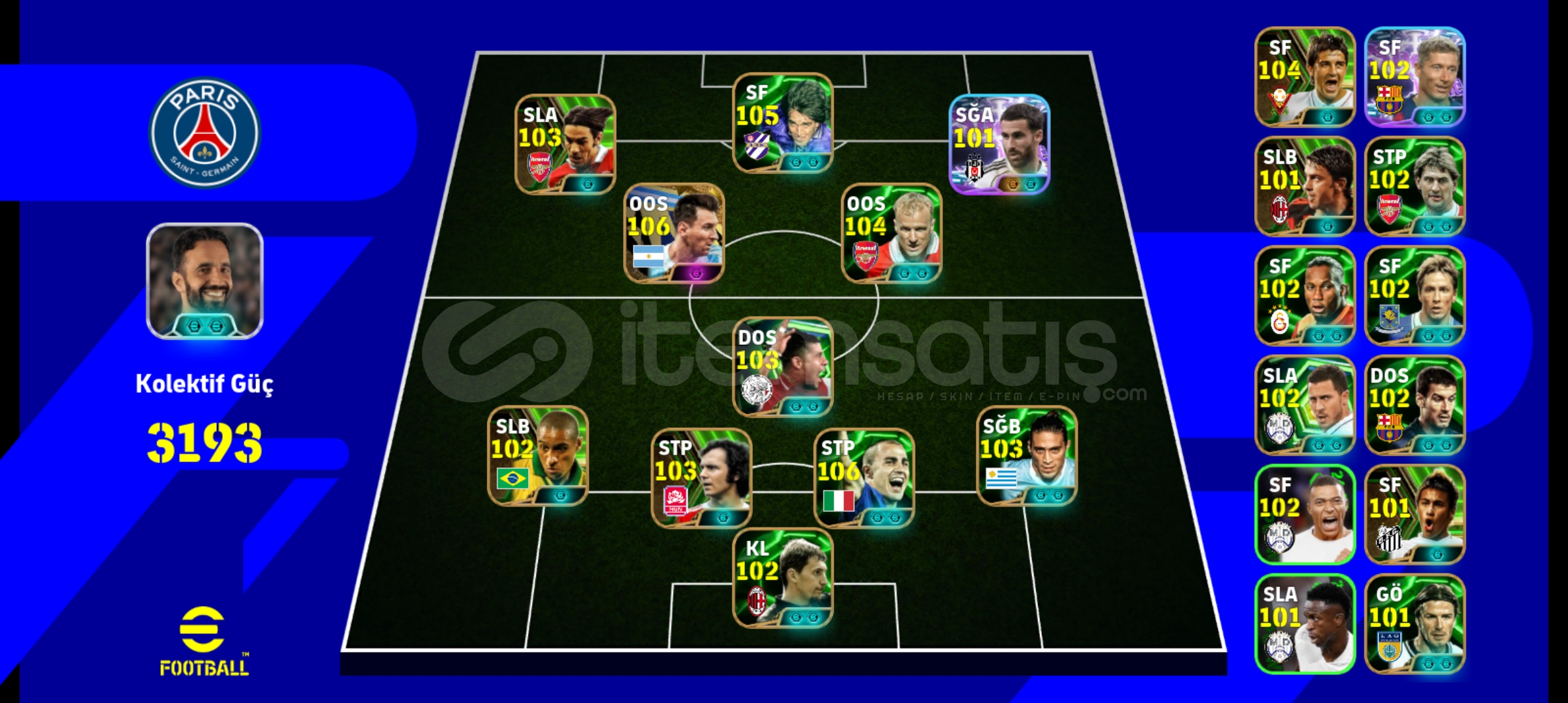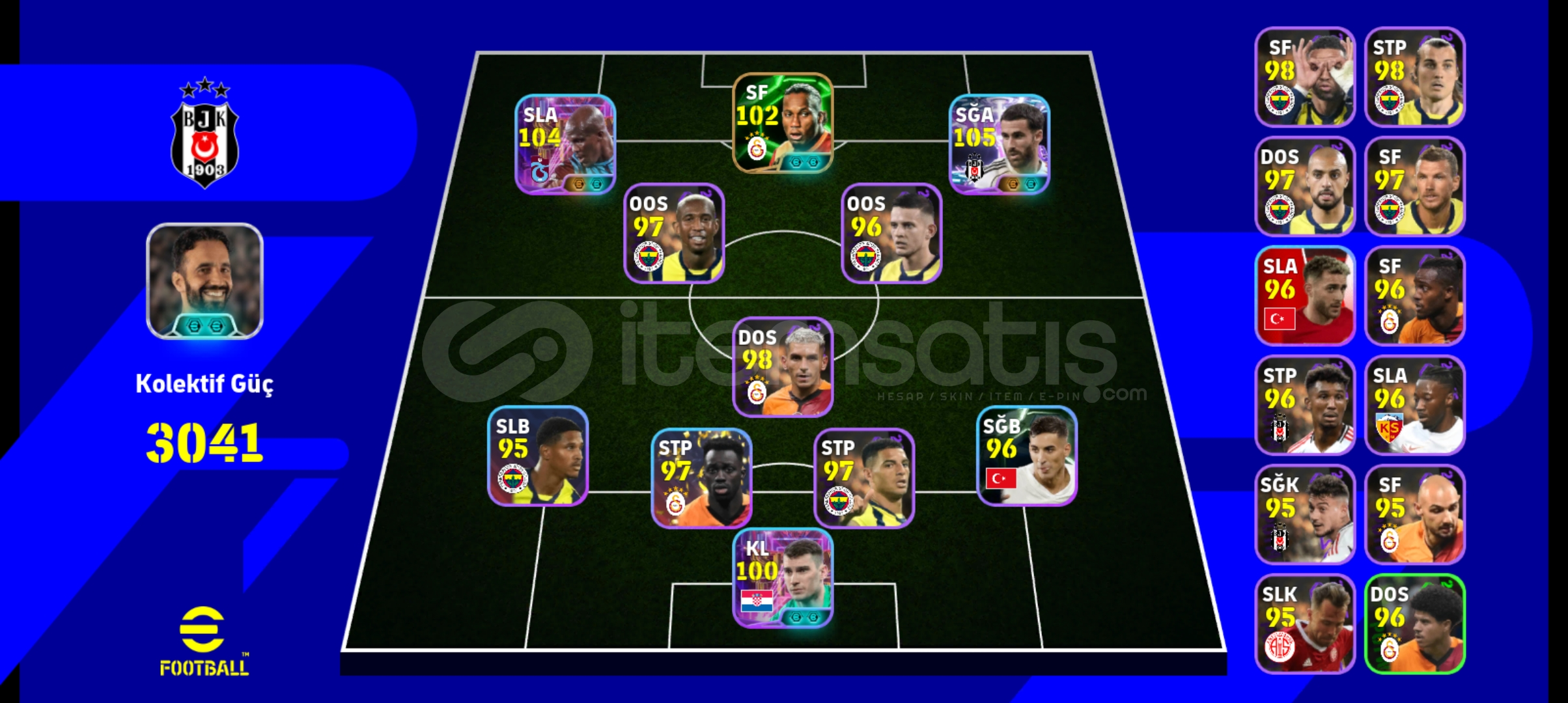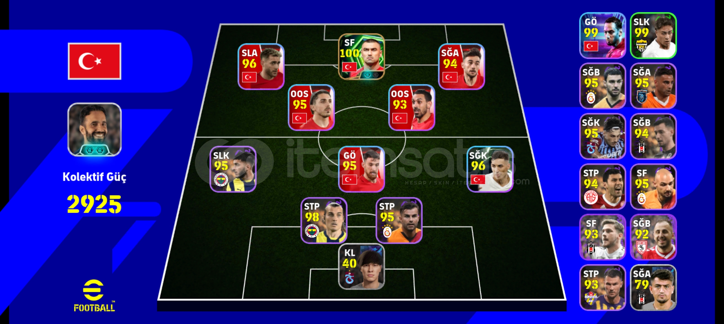 Ana Kadro Max 3195 Kg 🌟Destansı Kadro 3177 Kg 🔱Süper Lig Kadro 3041 Kg ✨POTW Kadro Yeşil 3088 Kg 🟢POTW Kadro Mavi 2906 Kg 🔵Göze Çarpan Kadro 3098 Kg ♠Nadir Kadro 2996 Kg ⚜️Türkiye Kadro 2898 Kg 🇹🇷Tek Bağ Tokpam 400+ Oyuncu⚠️