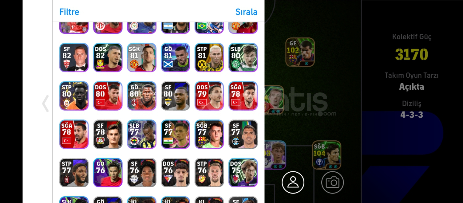 Hesap tek bağdırEkşi MC yokturBombacı Burak var hesaptaPes 21 hesabıdır aşırı eski kartlar varHesapta çok eski olan khmich var