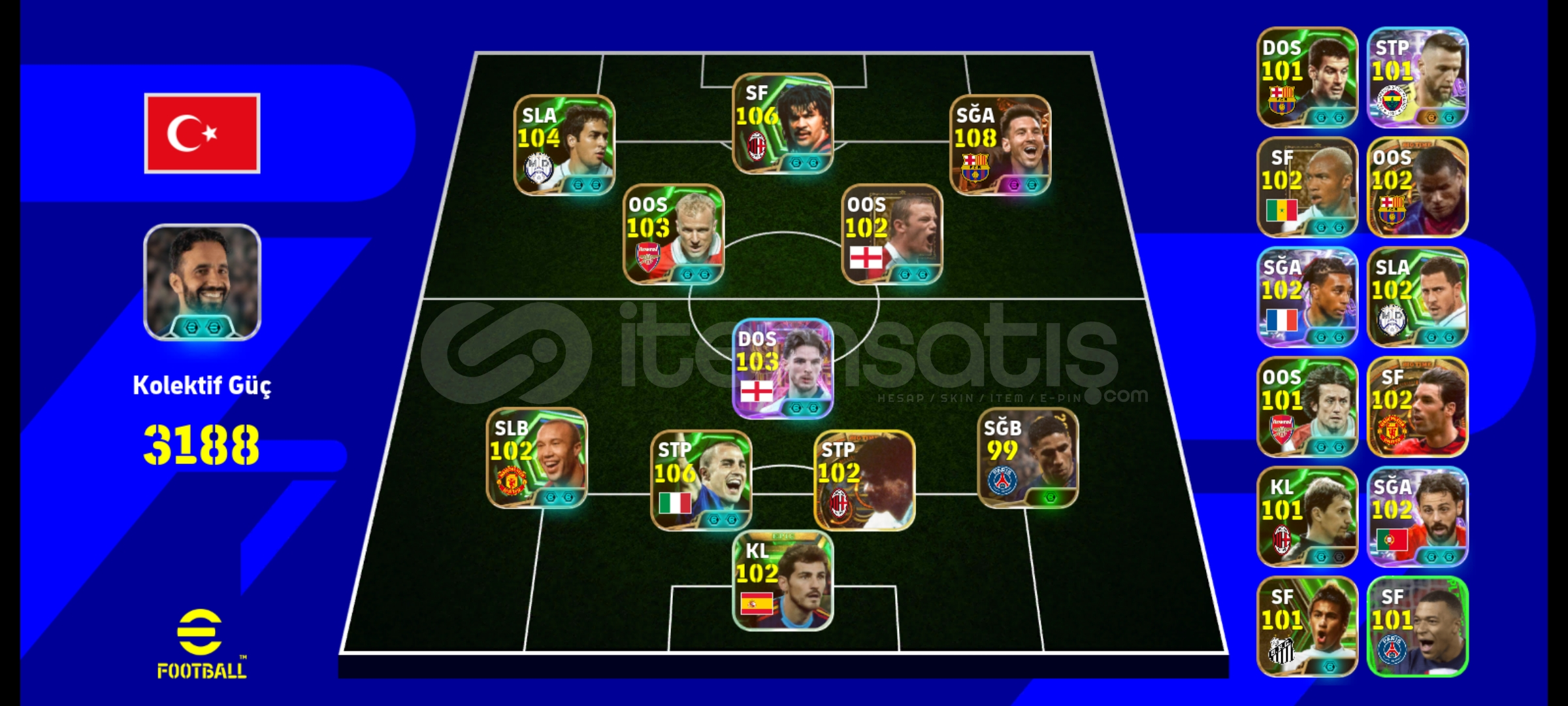 3 BOMBACI 1 YER FÜZECİ 💫TEK BAĞ ✅8 PARALI KART 💎3 BOOST TD 🔥 EPİC-SHOWTİME-SÜPERLİG KADROSU 👑DOLU REZERV 🏆108 Bombacı Messi ⚽ 106 Yer Füzeci Gullit ⚽106 Cannavaro ⚽103 Raúl ⚽103 Bombacı Bergkamp ⚽102 Bombacı Olise ⚽ 102 Big Time Rijkaard ⚽102 Silvestre ⚽102 Casillas 🧤101 Guardiola ⚽ANINDA İŞLEM ⚡