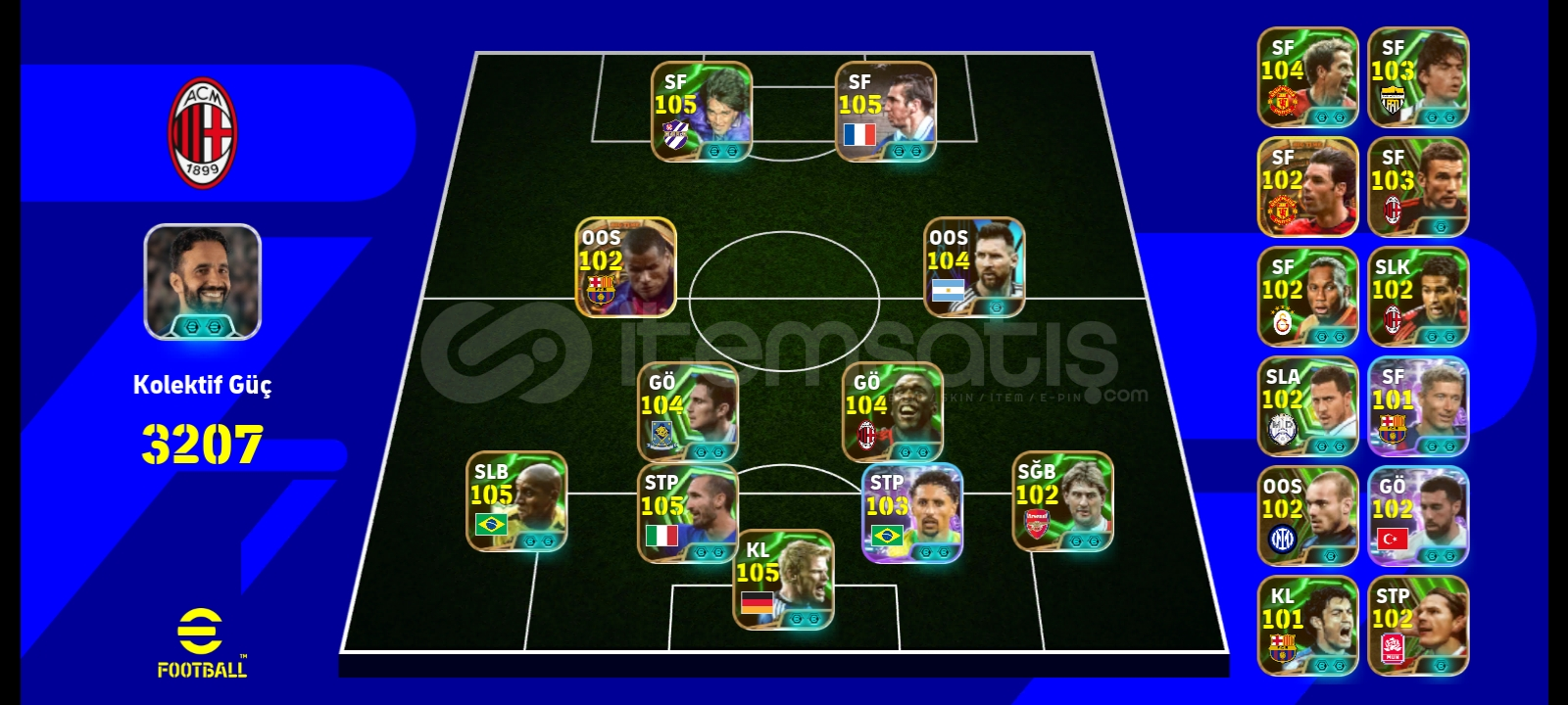 105 Chiellini, 104 Seedorf, 104 Lampard, 105 r.carlos, 105 Cantona, 103 Shevhenko,100 bombacı yunus, bombacı bale, bombacı burak, 103 İnzaghi