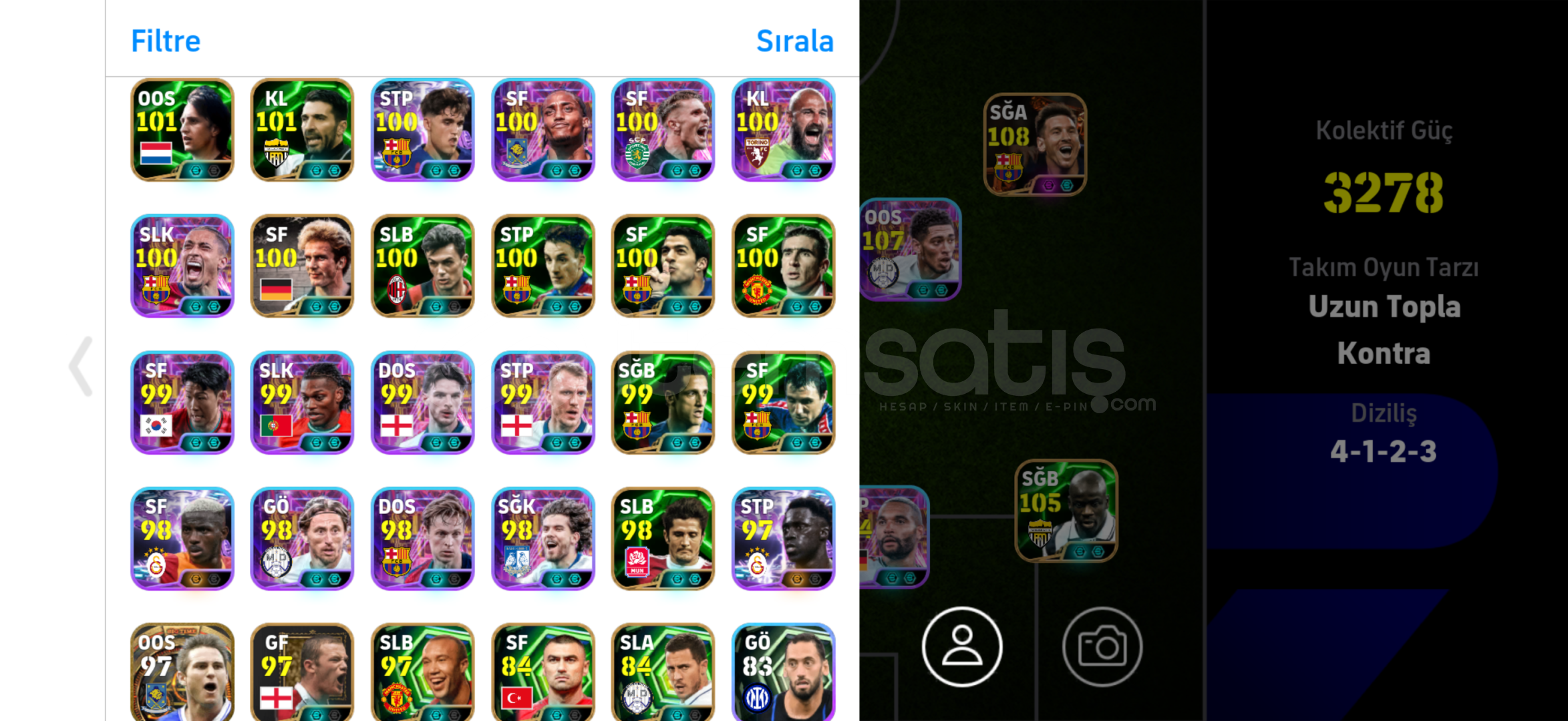 Hesap max 3279 kollektife ulaşıyor tek bağlı ve 108 messi 108 peleli çok acilen satılık