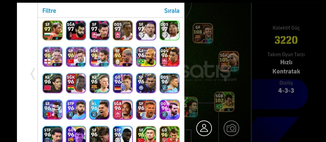 Hesap ağzına kadar doludur103 epik kart CR7108 Bombacı Messi106 bombacı yamal105 Neymar105 suarez105 iniesta105 Buffon103 icardiHe...