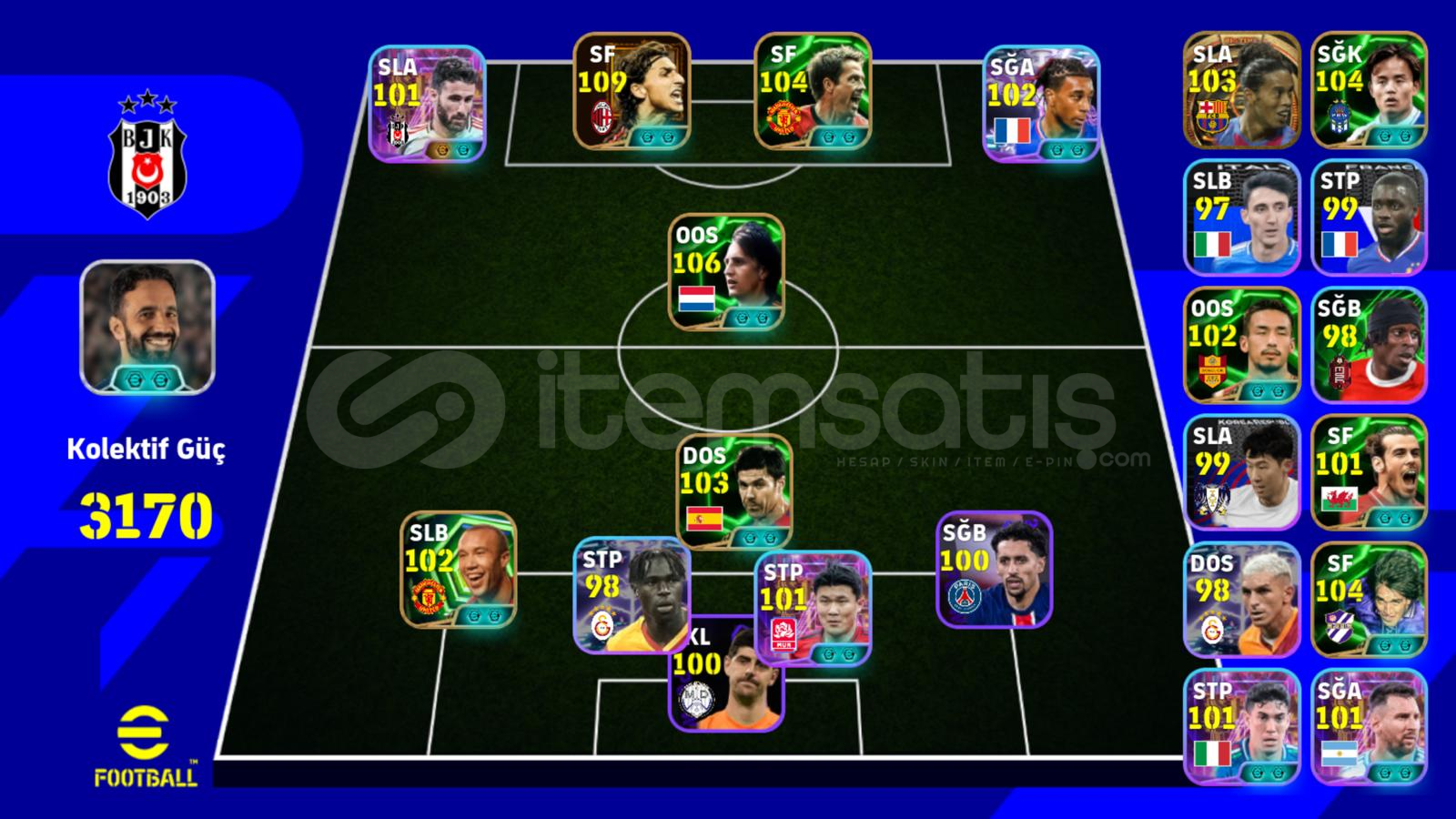 110 zlatan /105 rafa bombacı ve bombacı olmayan kartı/104 owen/102 bombacı olise/ 106cruyff/103xabi/103ronaldinho/104kubo/101bombacı bale/104 batistuta ve gerisi gördüğünüz gibi sorcaklarınızı sorabilirsiniz tek bagdır ve hesap çok fazla şanslı