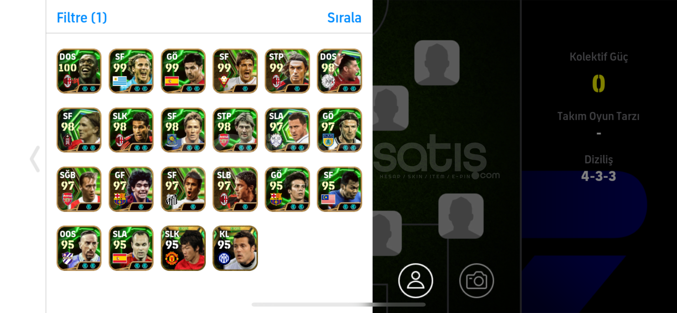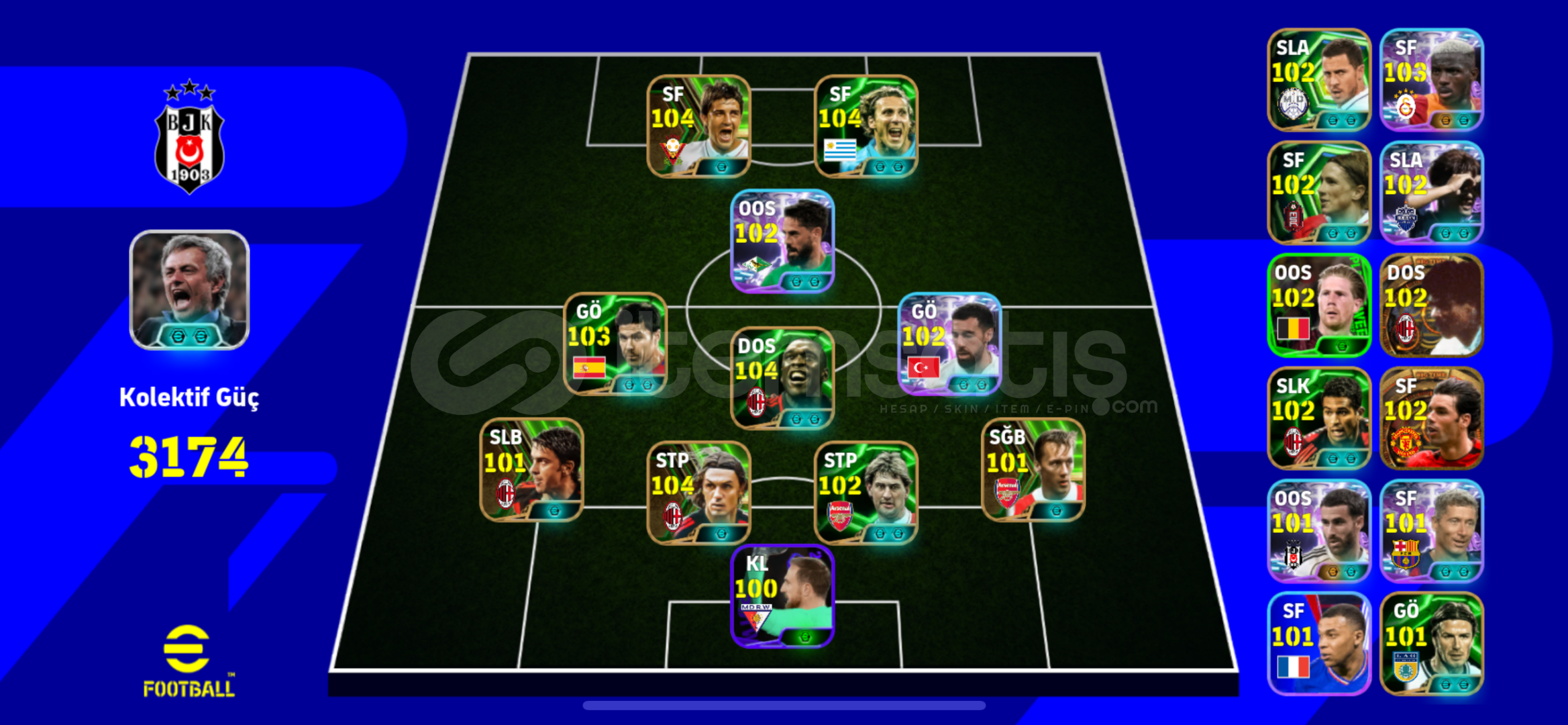 Maks kg 3174Süperlig Kadro (54 Süperlig Oyuncusu)Jose Mourinho 107 Osimhen / 105 Rafa Silva / 104 Maldini / 104 Seedorf / 104 Forlan / 104 Villa3 Destansı Bigtime22 Destansı1 Efsanevi11 Göze Çarpan Showtime138 Göze Çarpan139 Trend1 Standart oyuncu bulunmaktadır5 Menajer
