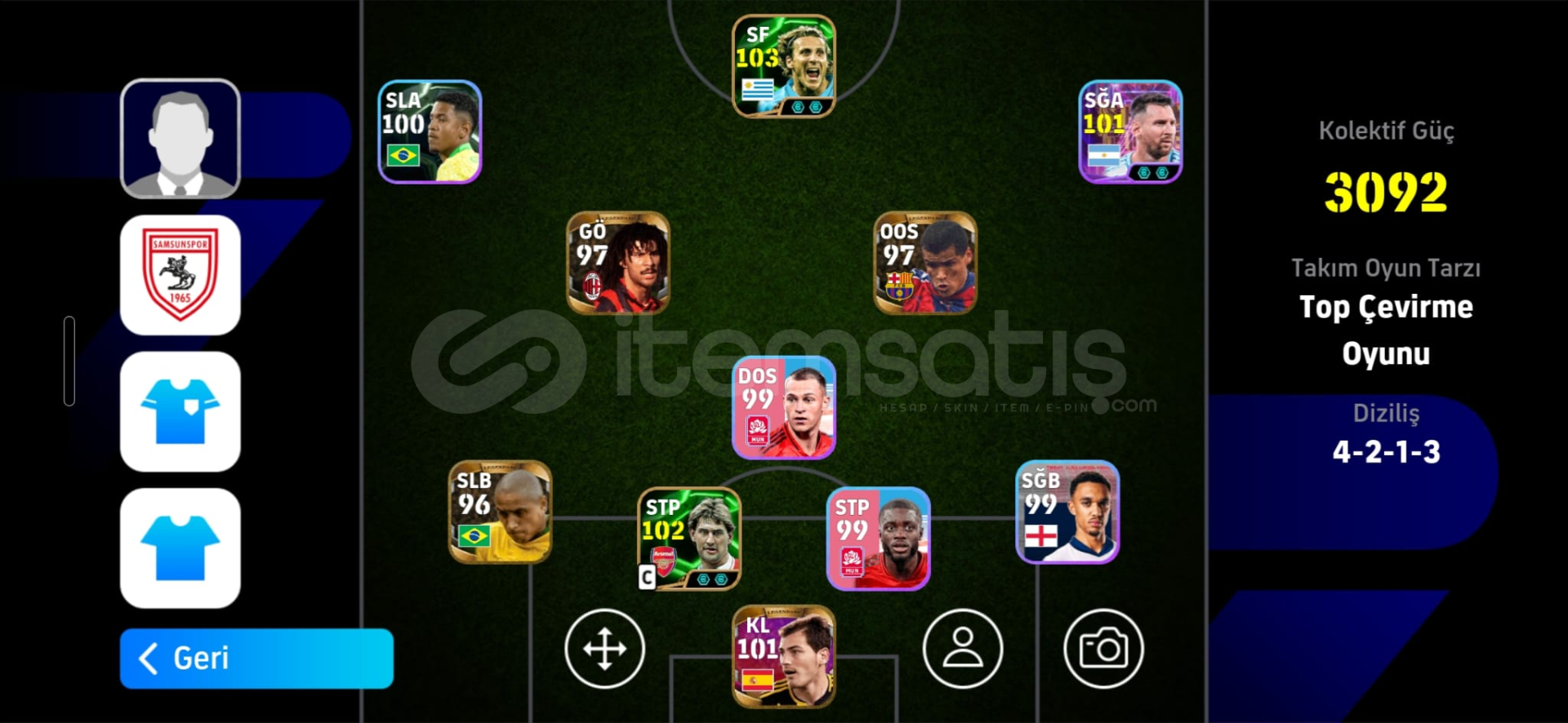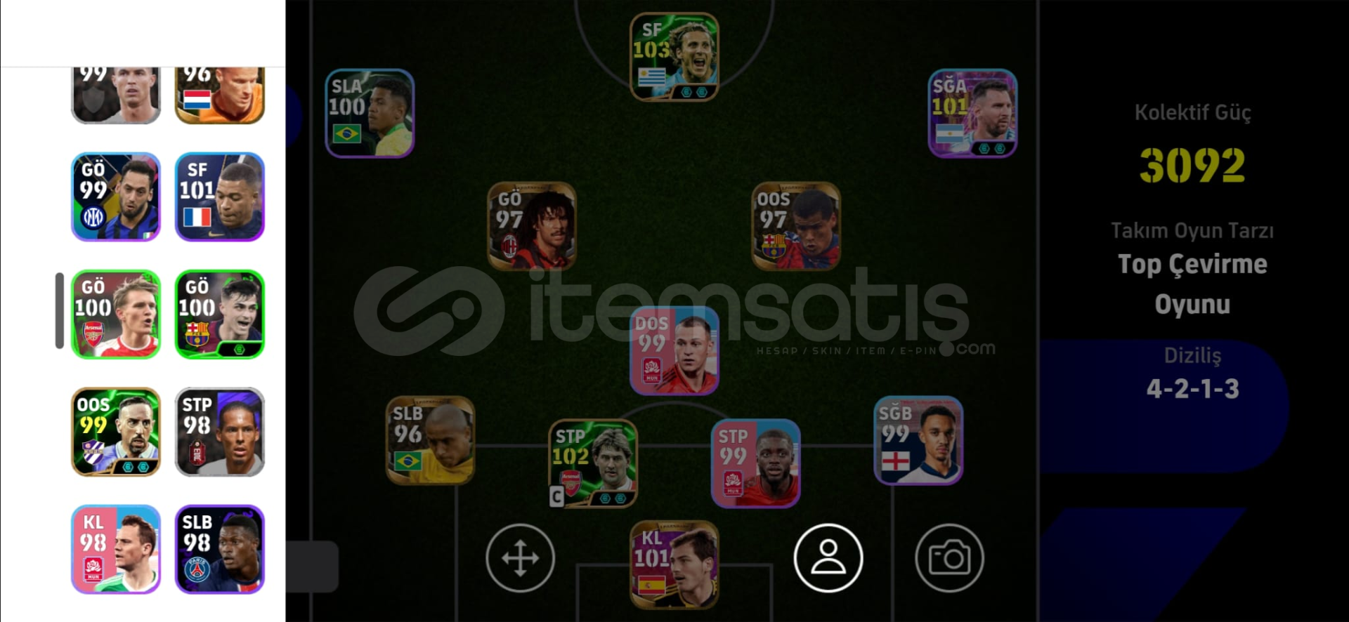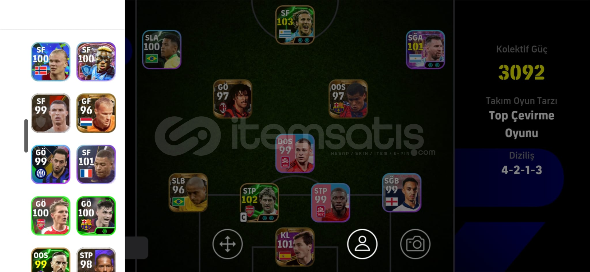 HESAP COK ESKI BIR HESAPTIR OYUNCULAR RESIMDEKI GIBIDIR.-96 Bergkamp EFSANEVI (eski efsanevi oldugu icin reytingi dusuk.)-96 Roberto Carlos EFSANEVI (eski efsanevi oldugu icin reytingi dusuk.)-97 Rivaldo EFSANEVI (eski efsanevi oldugu icin reytingi dusuk.)-97 Gulit EFSANEVI (eski efsanevi oldugu icin reytingi dusuk.)-101 Casillas EFSANEVI-103 Diego Forlan DESTANSI-100 Osiimhen ESKI SHOW TIME-100 HAALAD 4 YIL ONCEKI HALIHESAPTA -coin YOKTUR! 75 COIN VARDIRSADECE KONAMI ID BAGLI, mail kendi mailim...