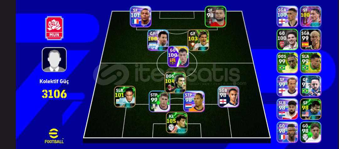 3106Kolektif Güç-103David Villa-104Andrea Pirlo-101Martin Caceres-105Casillas-100Darwin Nunez-98Safee Sali-340myclub mükemmel hesapp pazarlık yapılır çok öldürmeden
