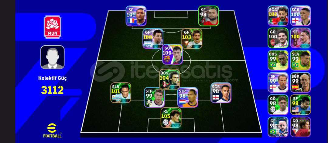 3112 Kolektif Güç-105Casillas-104Pirlo-101Caceres-103Villa-102Silva-100Nunez-98Safee Sali450myclub