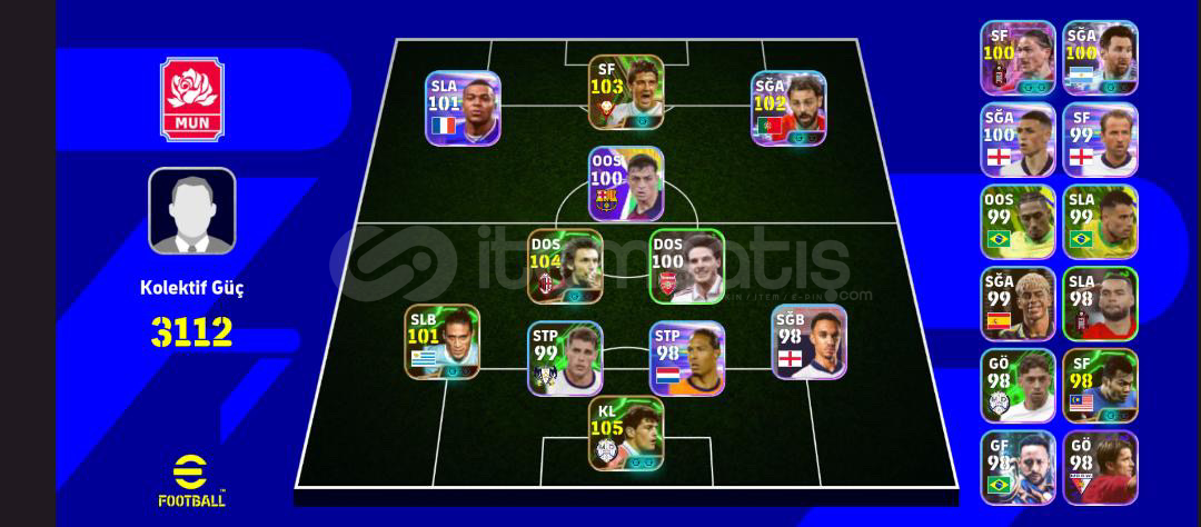 -104David Villa-101Darwin Nunez-102Bernardo Silva-105Andrea Pirlo-101Martin Caceres-105İker Casillas-98Safee Sali