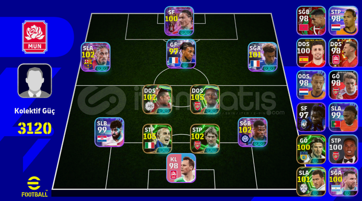 Tek bağ-mc yokteklif ilanıdır SAKIN ALMAYINIZ106 Viera103 DumfriesBombacı Olise ve Doue102 Raphinha106 Cannavaro en yüksek teklife gider
